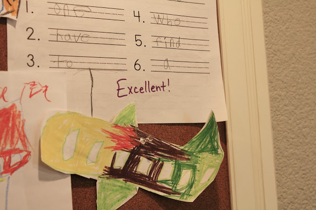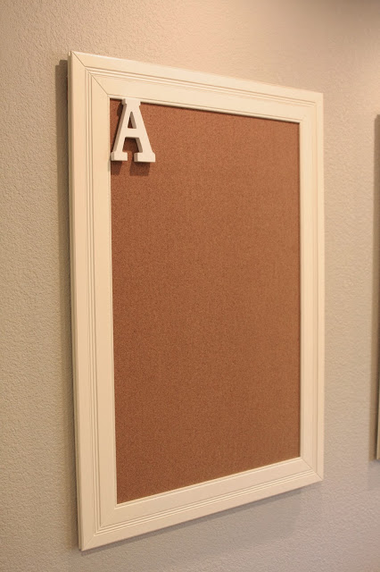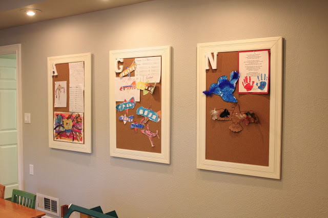 Before pinning up that great art work, I added each of the kids first name initials to the upper left corner. I found these at Michaels…