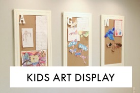 There is a great wall in the playroom that is the perfect spot for a kids art display. However, I didn’t want the entire wall to have a cluttered look because the room is in the main living area of the house.
