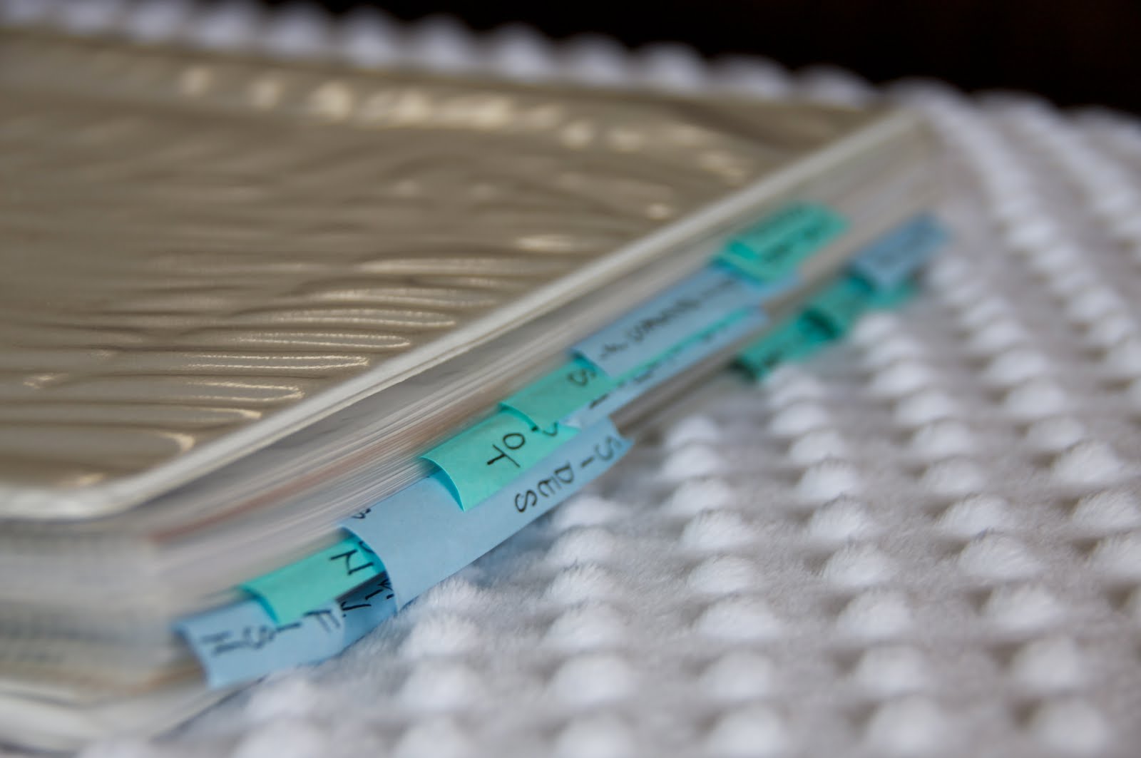 once i had all of the recipes sorted into keeps and trash, i stacked them into categories. then, it was time to create labels for the section dividers: