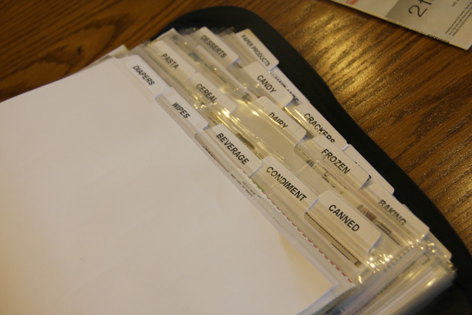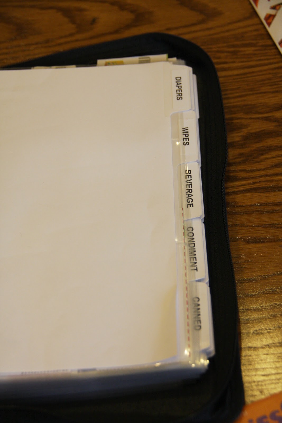 on the right is where i keep all of my clipped coupons. that section is divided into categories.