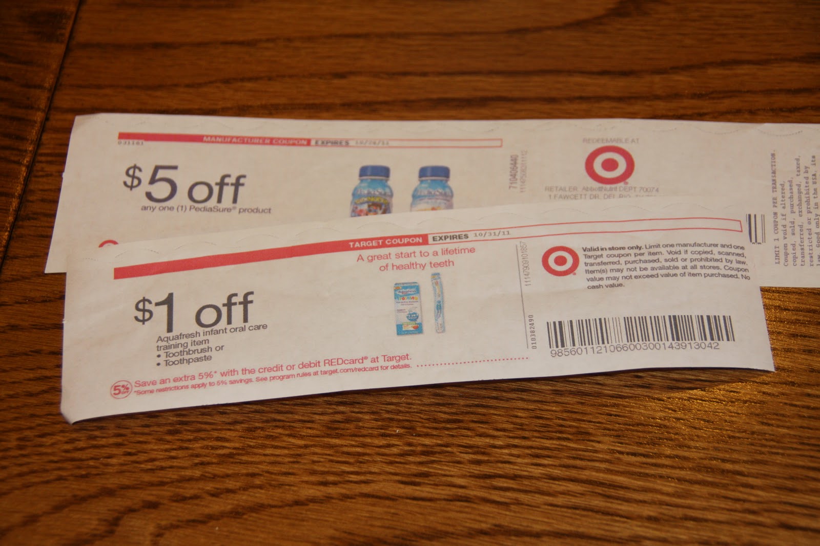 look at these 2 catalinas i received at Target. notice here this one says “target coupon”. that means if you had a regular manufacturer coupon for Aquafresh Infant Oral Care items, you could stack both of those coupons together to save even more…..