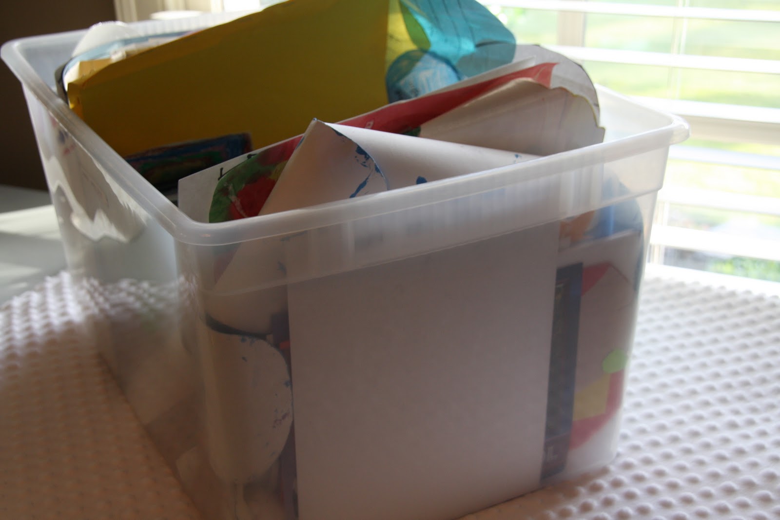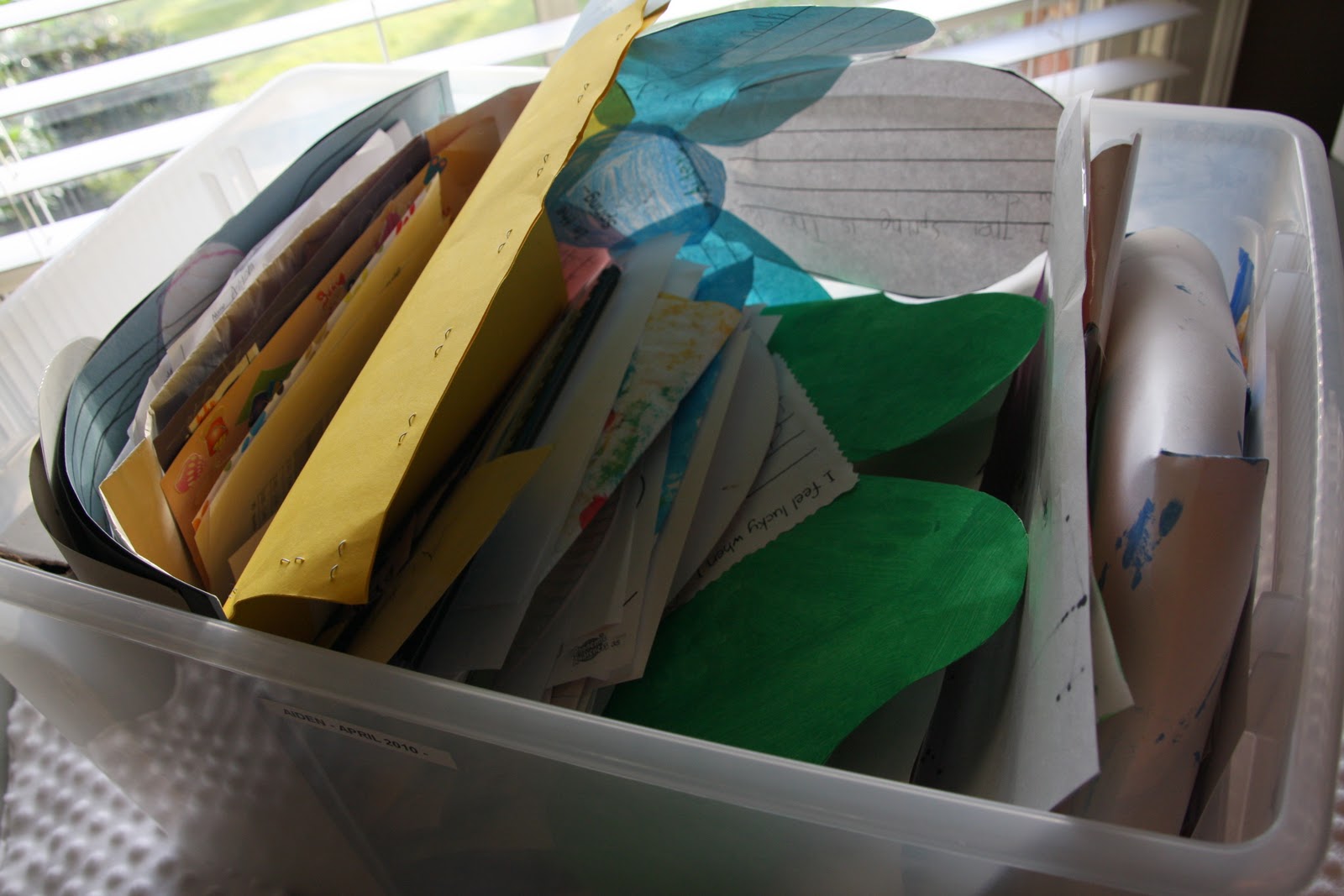 when the week ended i kept only the pieces i couldn’t live without and separated them by month in a bin …. like this one….(i have bins for each of the boys – yes we have a lot of these!)….