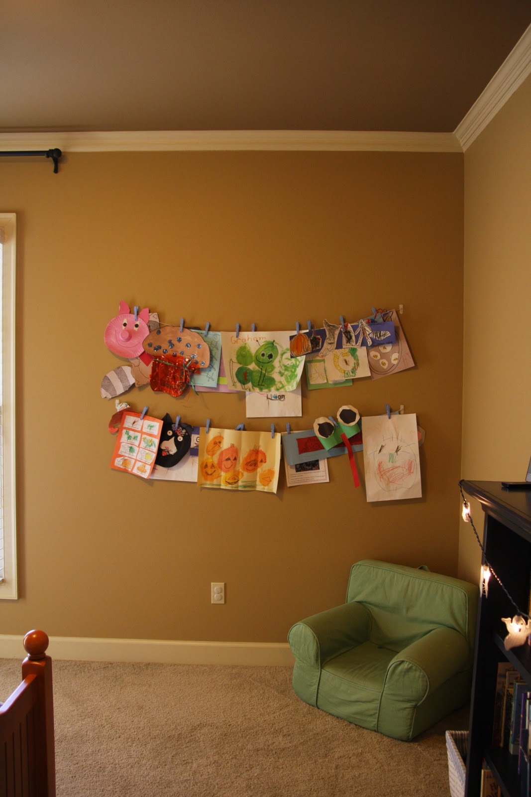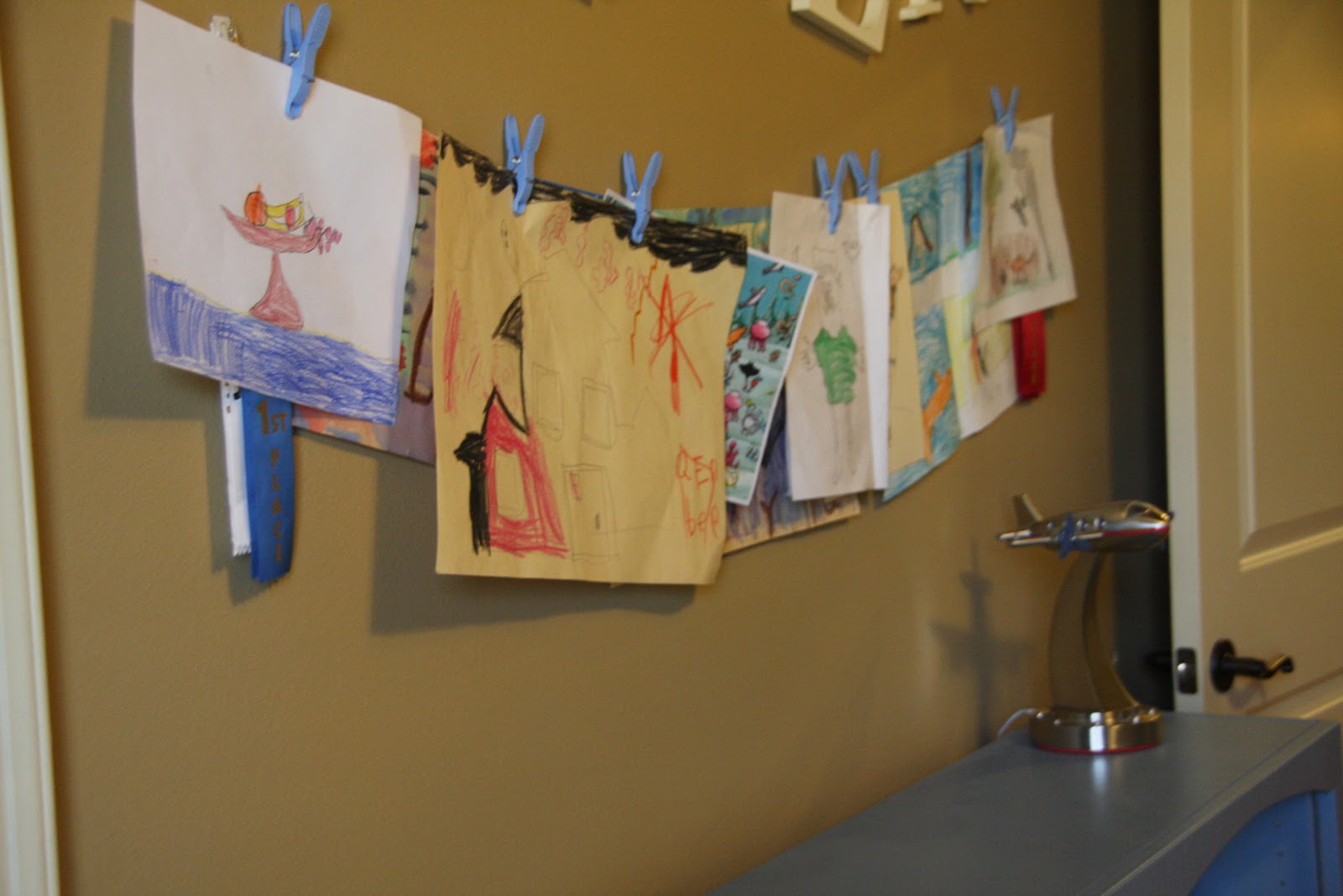 in my 5 year old’s bedroom, i made a double row of art string because he is in pre-k and there is way more artwork happening than actual homework. and i love how this art string really holds up…there is so much art work hanging here!…..