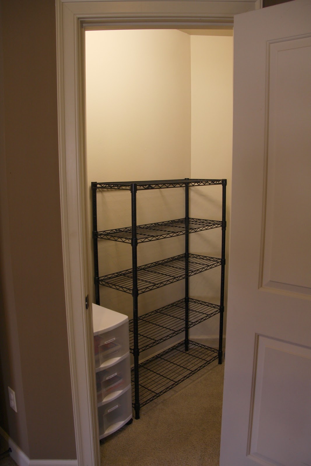 it fits perfectly right along that odd shaped wall! what are the chances of that happening? again, i love being able to re-purpose storage bins and shelving!