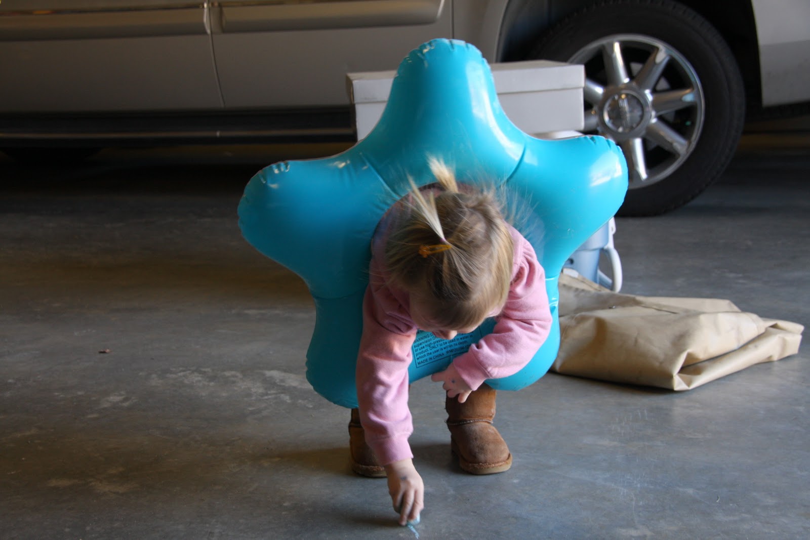 this project took a bit longer than expected because i had a “helper”….who also quickly figured out a great way to use those summer pool toys….as a tu-tu!….