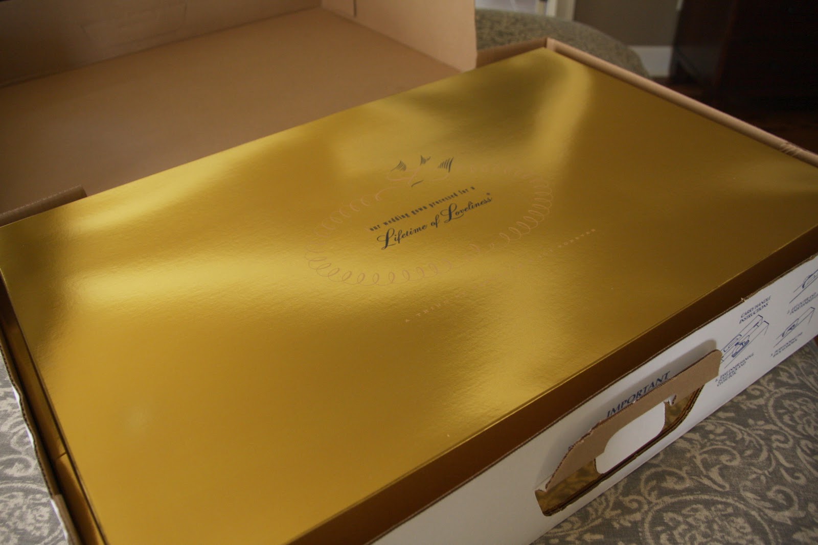 something as special as this deserves to be in a place of honor in our home – as opposed to living in our dirty, dusty, temperature-changing, buggy garage. i have always wanted to open the box too. a few years ago it occurred to me “what if my wedding gown isn’t in that box? what if after all these years someone else’s wedding gown is in there?”.