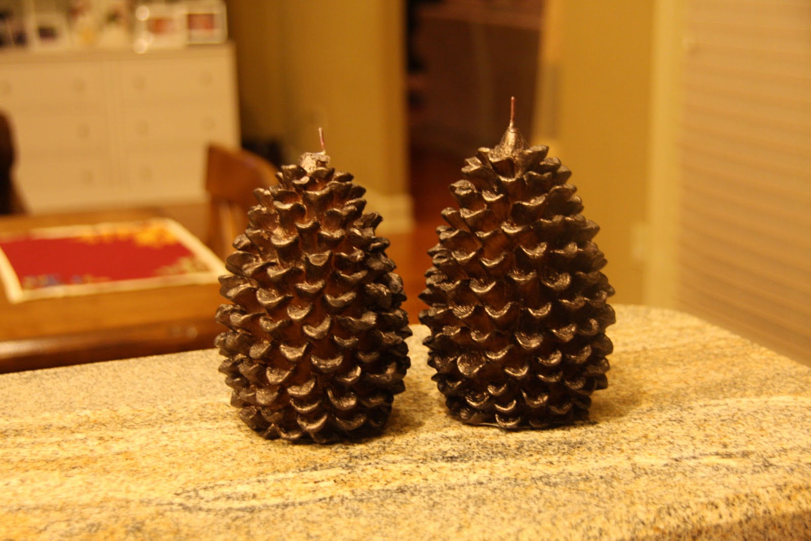 my husband and i love to have candles around the house. we have gathered quite the collection of them over the years….we have pine cones…