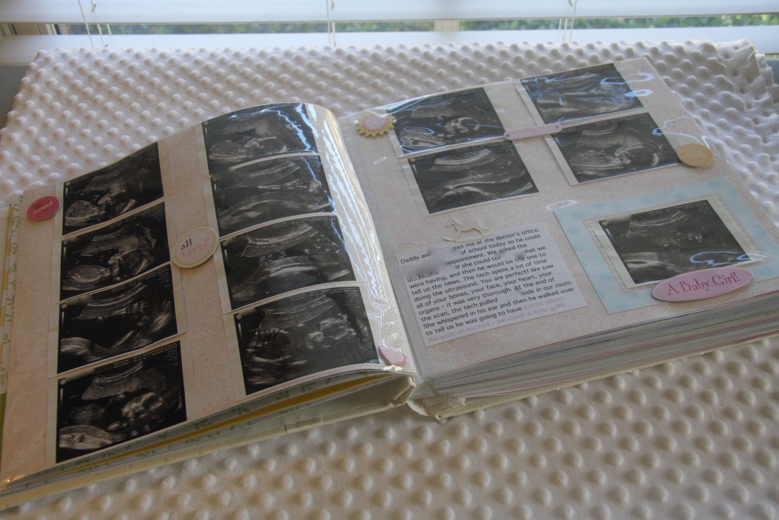then once i had her, and found the time, i put together a scrapbook. i included items like ultrasound photos, notes from our doctor visits…
