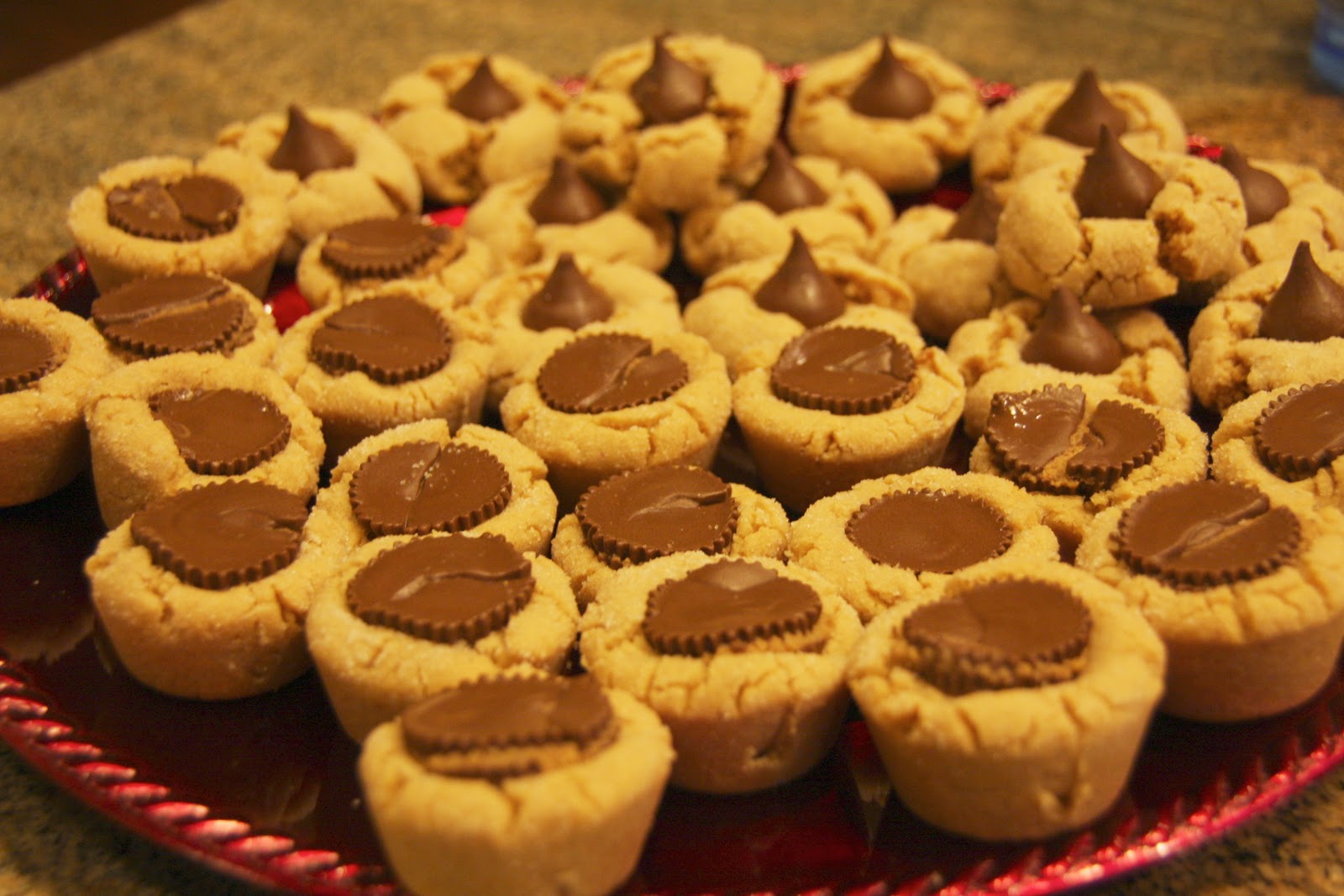 i made one batch of dough and split it…which worked out perfectly to make 15 peanut butter blossoms and almost 20 peanut butter cuppies. and wow, are they delicious! i think the batter alone would be perfect for a simple peanut butter cookie!
