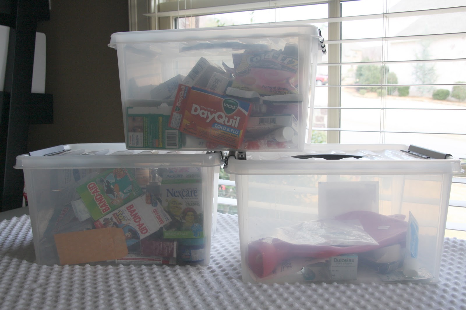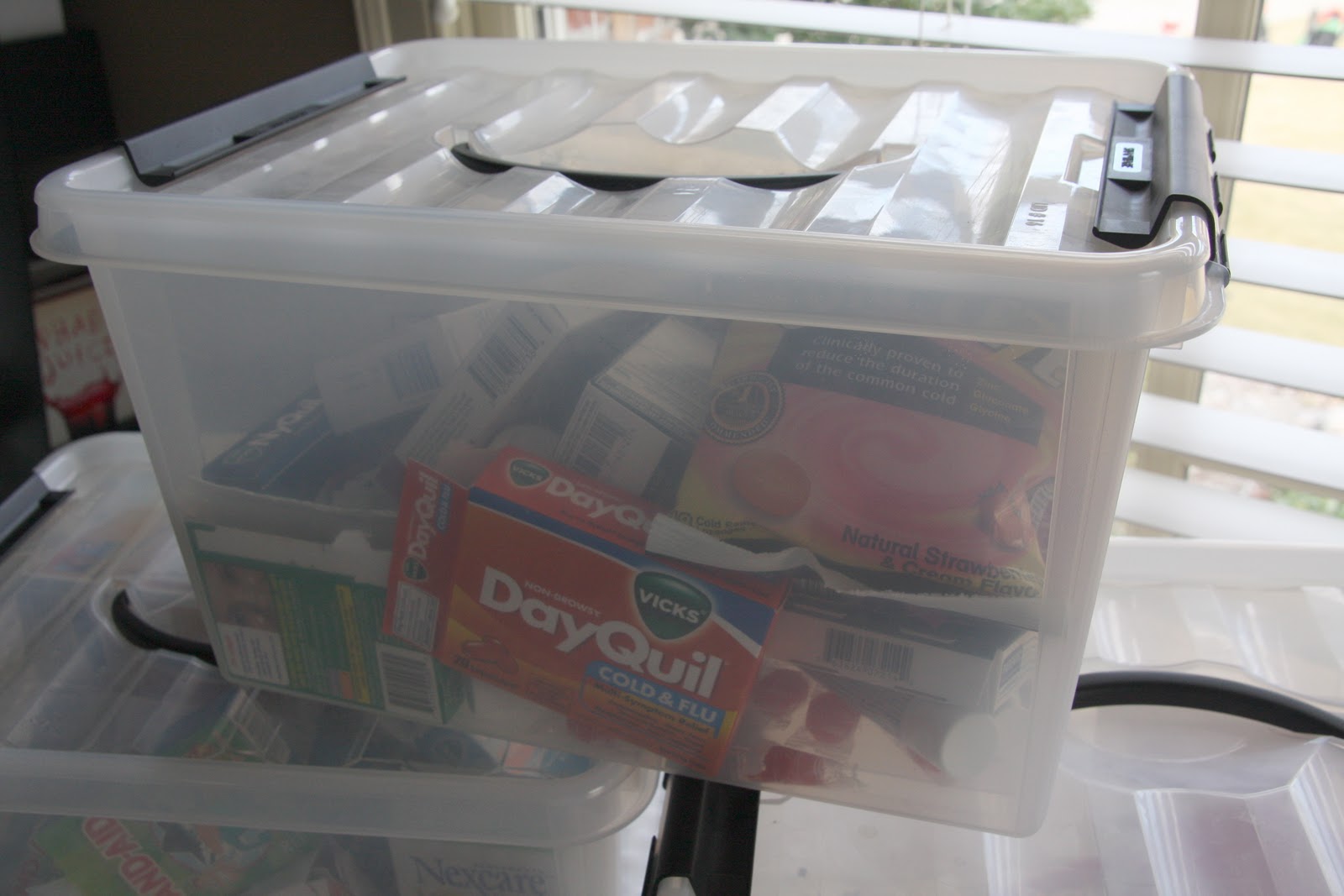 the next step was to sort through the keepers and place them into their new bins. we now have one bin for the kids medicine…