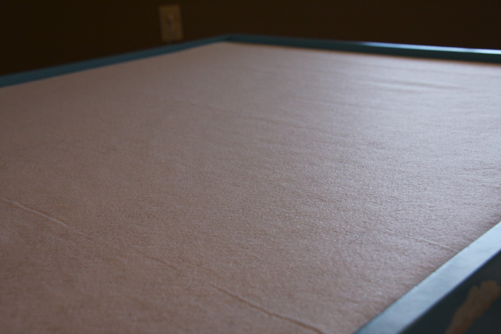 the underside of the tabletop is a light cream color. this worked out really well because i was worried the colorful side may show through the white felt….