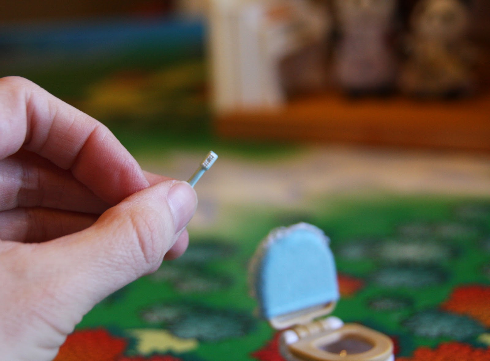 our daughter received a couple new calico critter sets for her birthday last weekend. again, see how teeny tiny these pieces are…