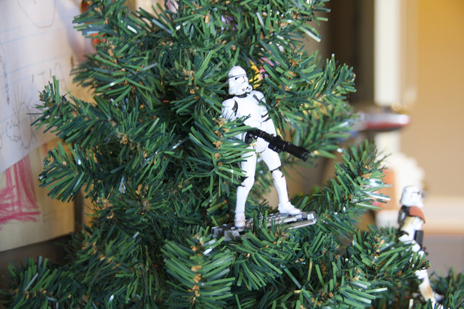yes, decorating a tree with Star Wars figures is completely acceptable in a 7 year old’s world…
