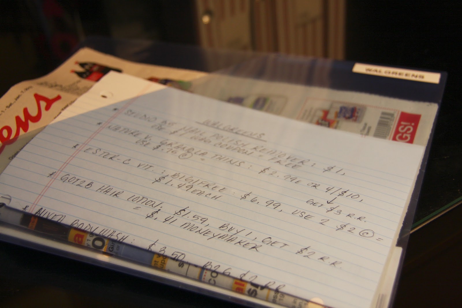 then i stick that bundle inside my walgreens folder and bring only that, along with my wallet, into the store when shopping…