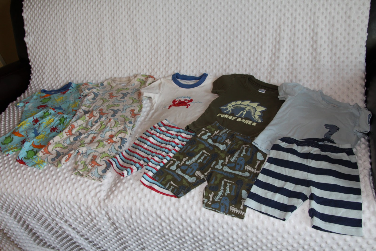 ** when you can, group like items together. below is good example of grouping. our 5 year old outgrew his summer PJ’s. instead of listing each set individually, i sold them as a group. all of the PJ’s were size 5T and all were Gymboree brand. it made sense to group and sell together…