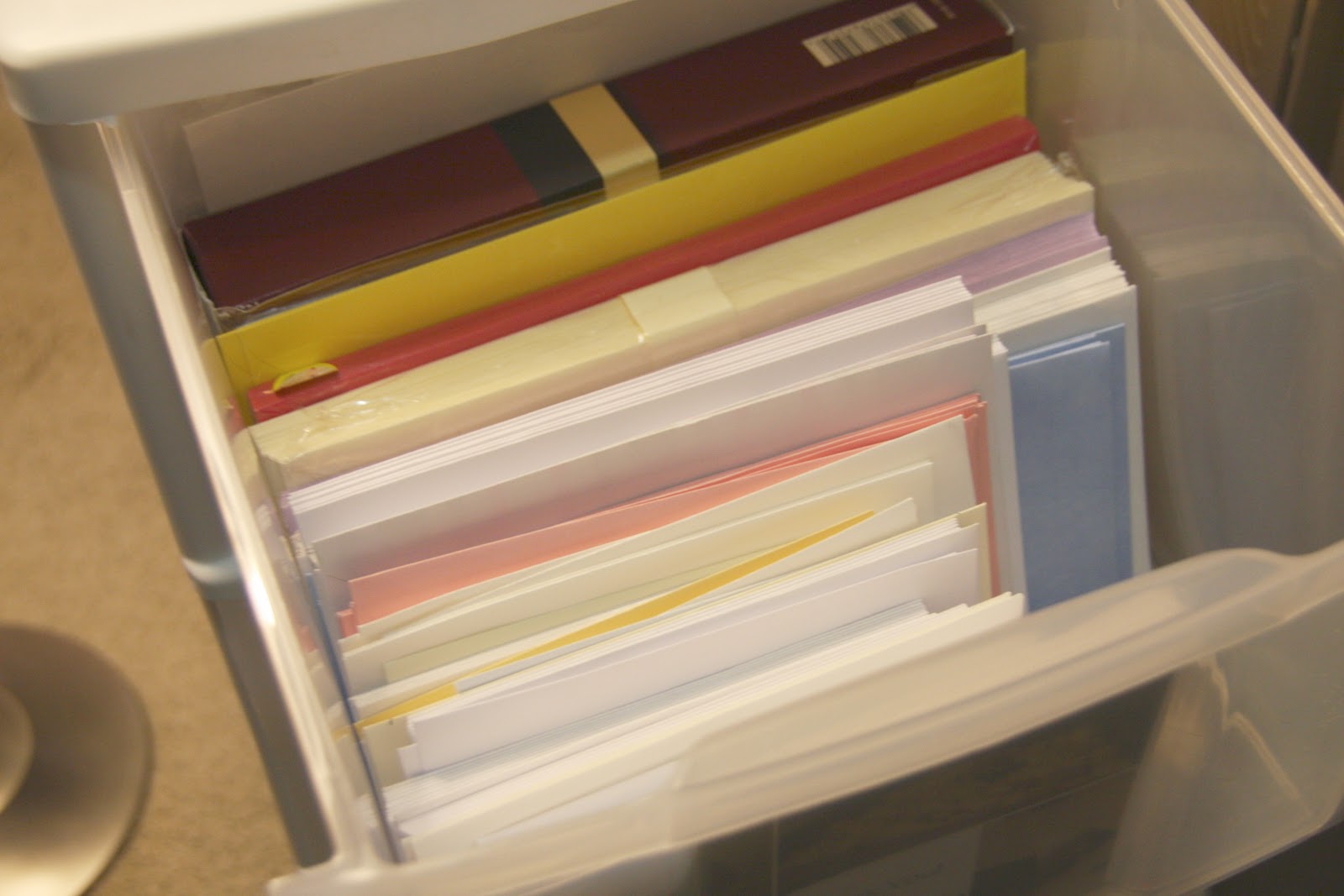 here are all of my newly re-organized rolling bin drawers. envelopes of all sizes…..