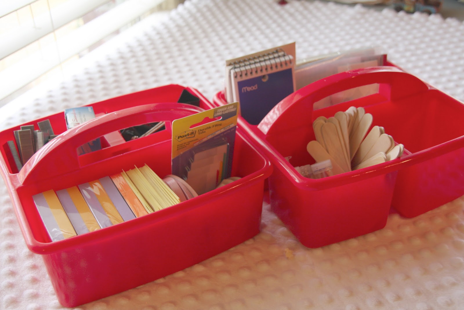 once i had it all laid out, i put my keeps into groups that made sense and started putting everything into a basket or caddy.
