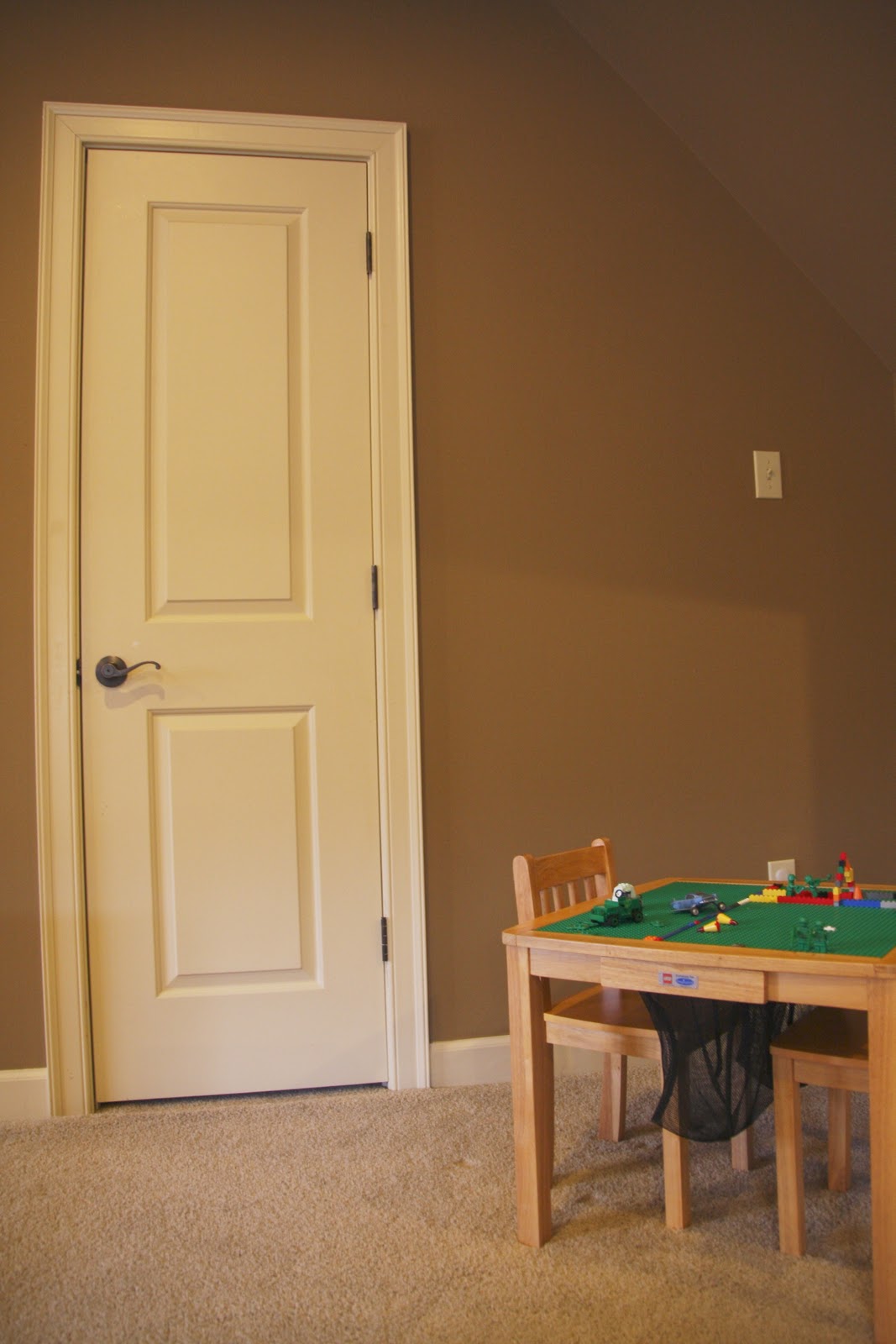 a few weeks ago we moved the Lego table to this corner of our playroom…which happens to be right next to our game/dress-up closet…