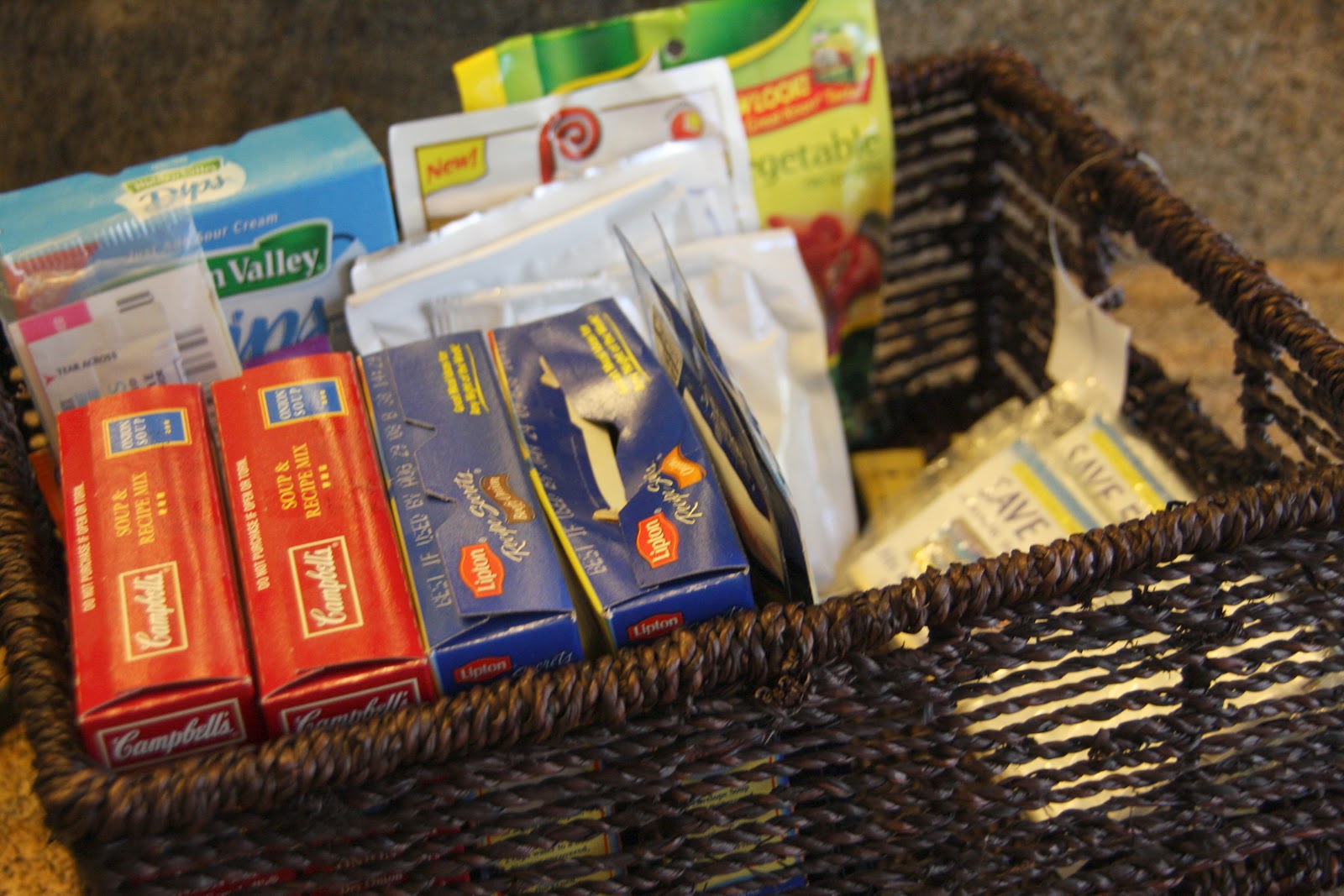 * Β Lots of baskets for similar items. IΒ had like items floating around on various shelves – some opened, some not. The baskets are my way of keeping similar items together. Hopefully we will use up one container/box before opening a new one.