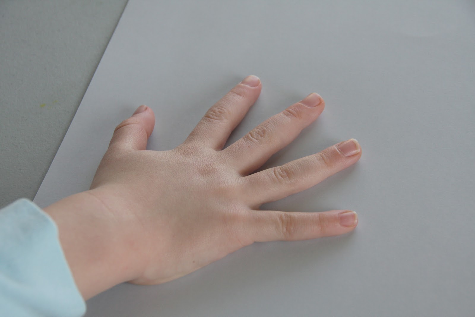 then, i traced mommy and daddy’s hands. i cut out the hand prints, flipped them over to hide any pen/pencil markings, and glued them on the background page…