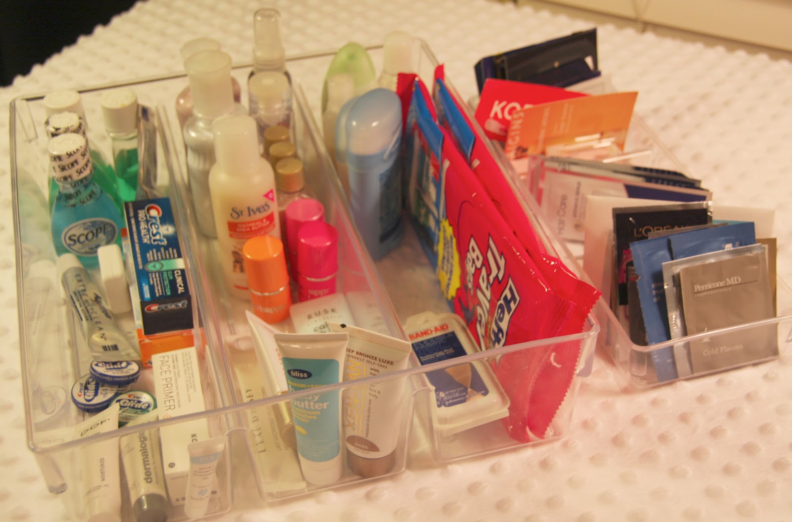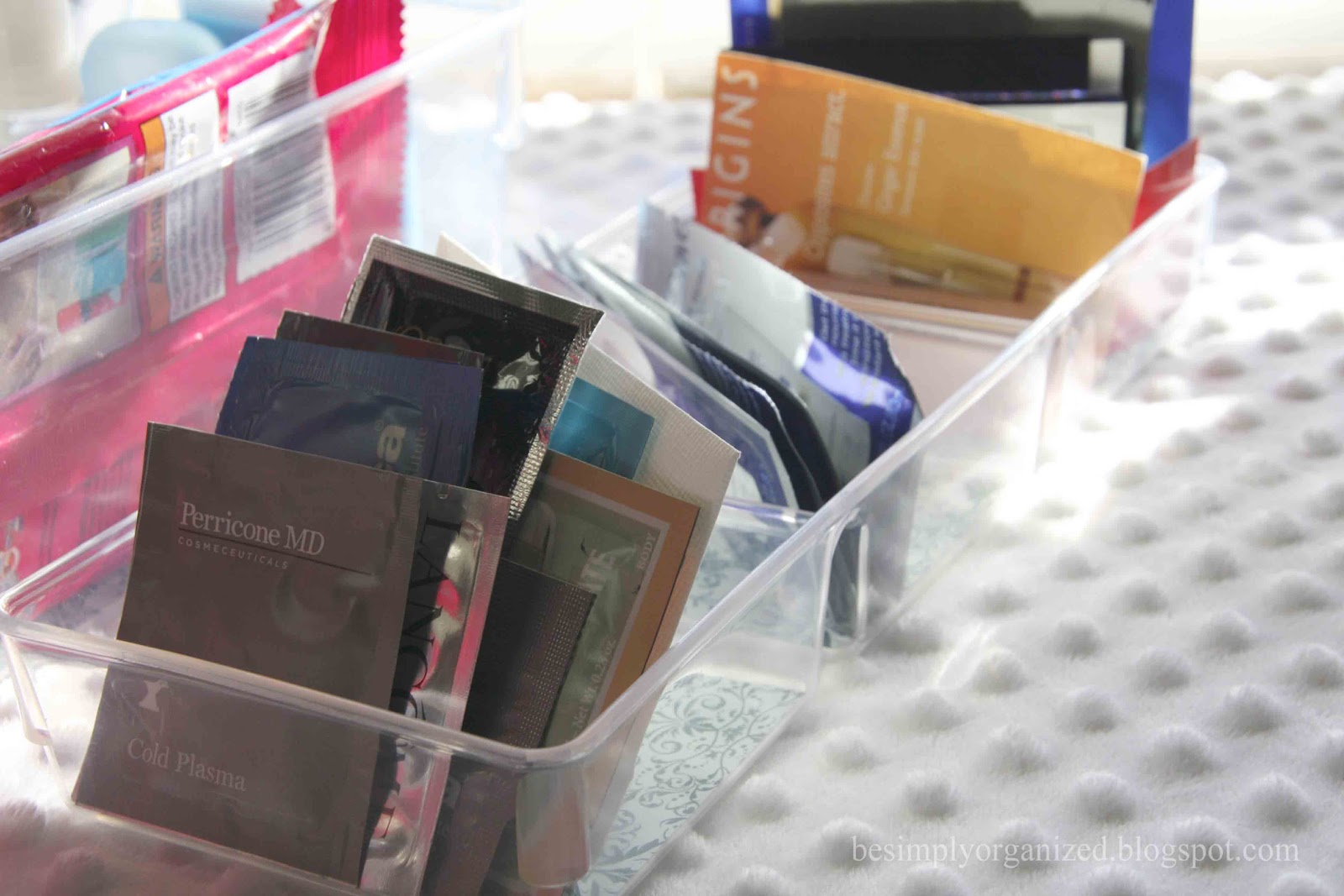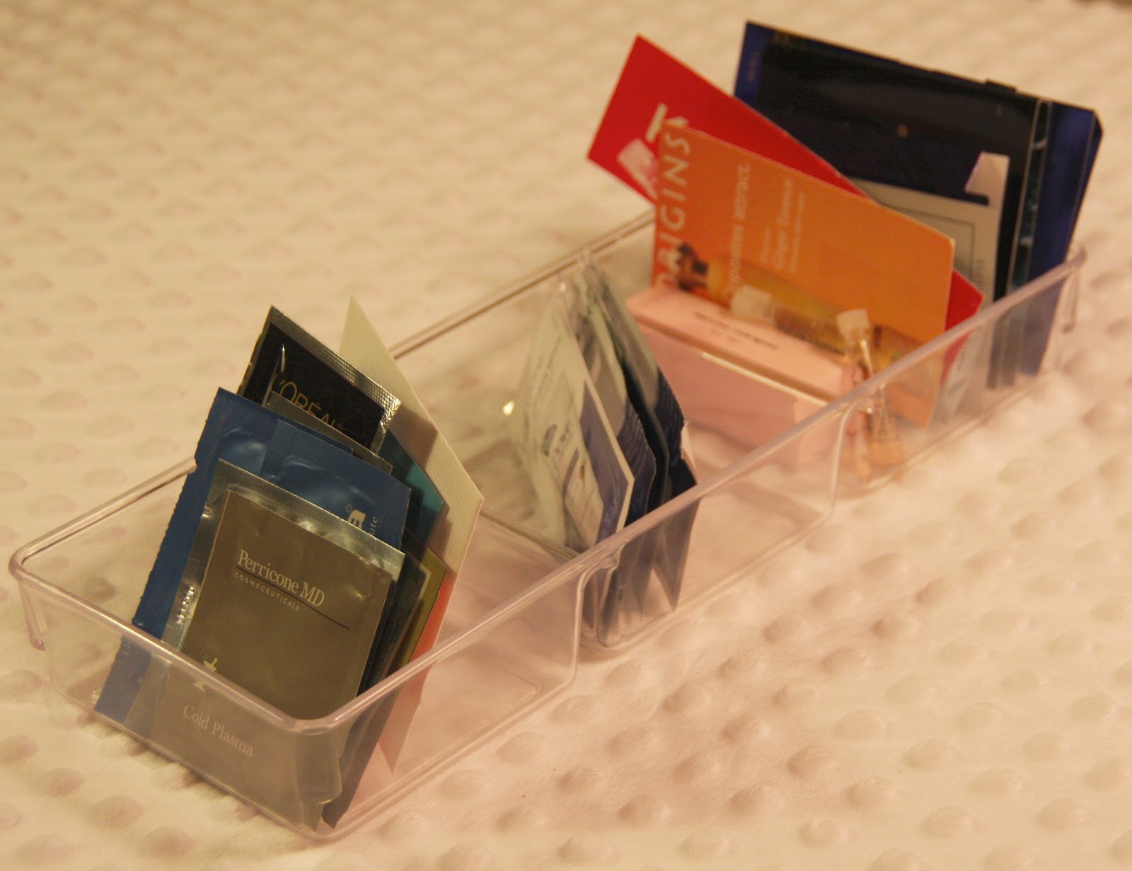 most samples we receive come in very small packaging. and they are perfect for traveling because they conveniently fit inside your overnight or toiletry bag. however, these small items can easily get lost in the shuffle of your bathroom drawers and cabinets.