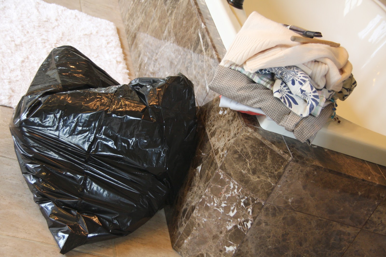 the final *out* result = 1 large bag of donations and 1 small stack for the garage sale…