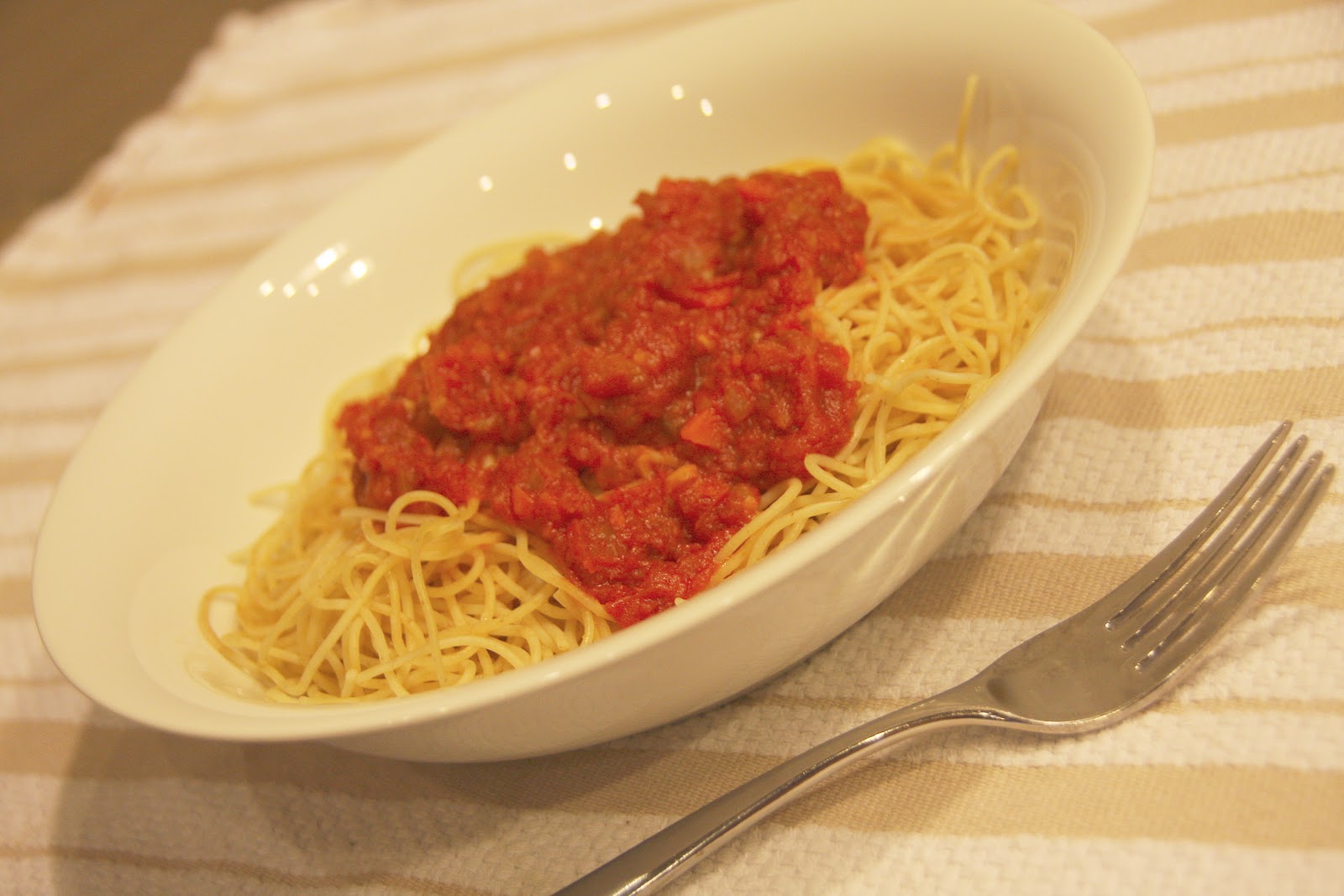 it simmers for about 40 minutes on low until it’s ready to be heaped onto a bowl of multi-grain (or regular) pasta…any shape, of course. our family loves angel hair…