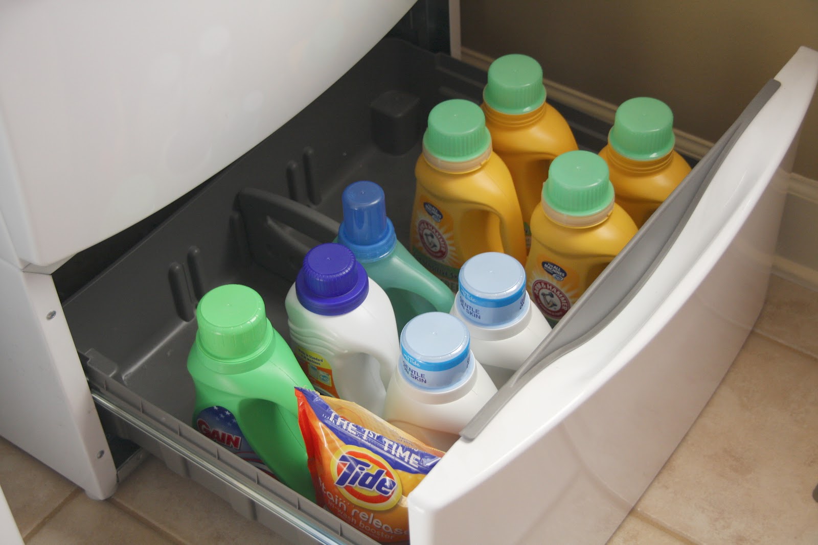 i love that these risers not only get the washer and dryer up of the floor and a bit higher (my husband and i are tall), but the hidden storage is a great place to store away my laundry detergent stockpile…