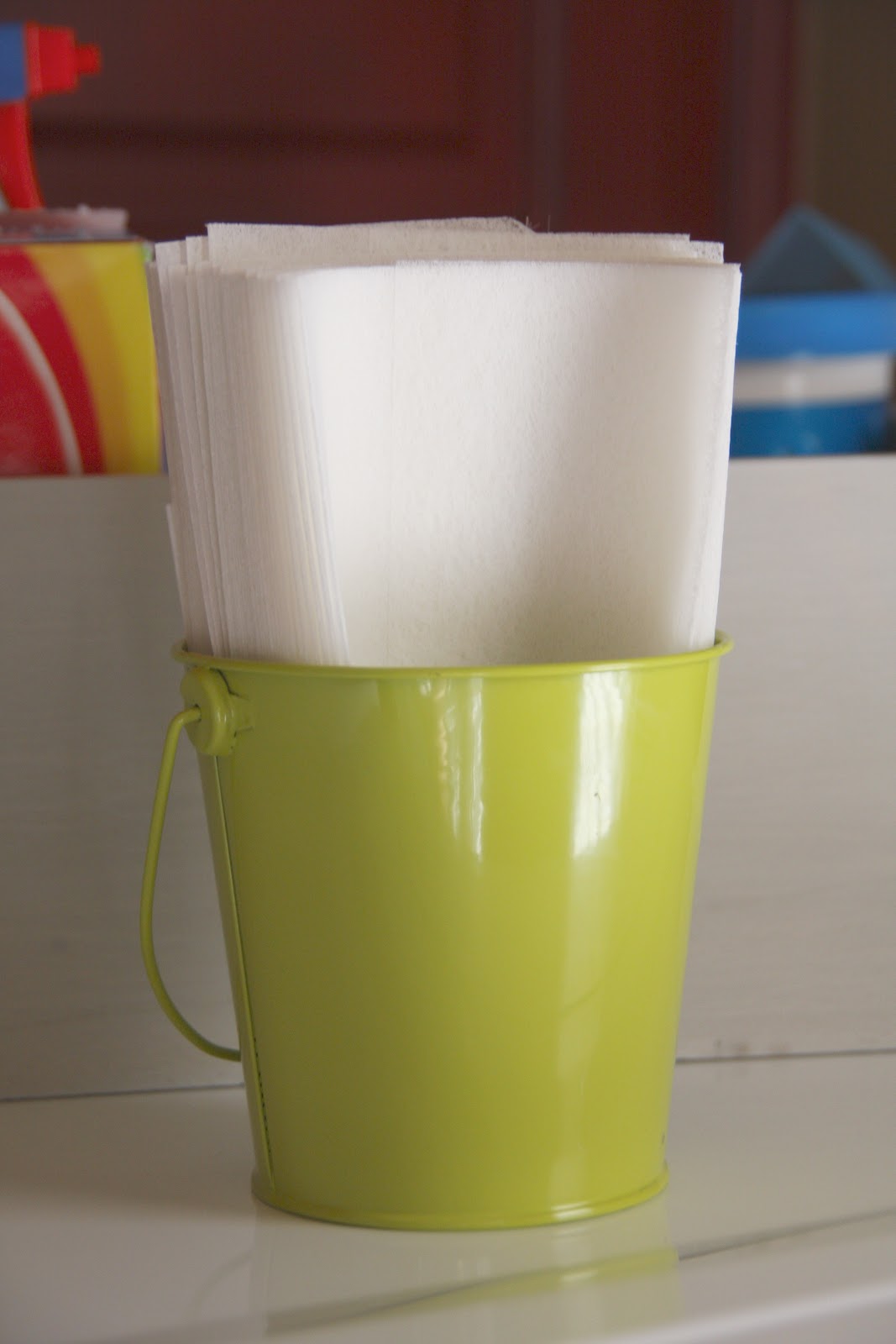 and this cute little pail i had tucked away in a closet. now it’s full of dryer sheets…