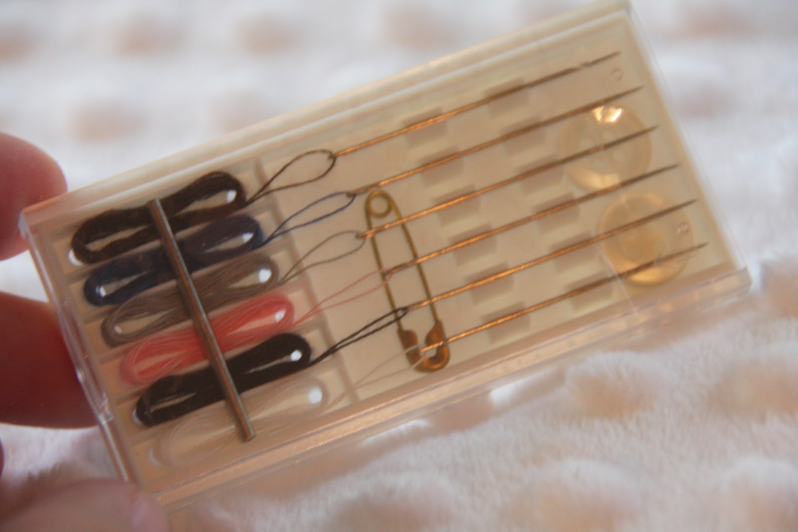 i also had the perfect little sewing kit that fit nicely inside one of the pockets…