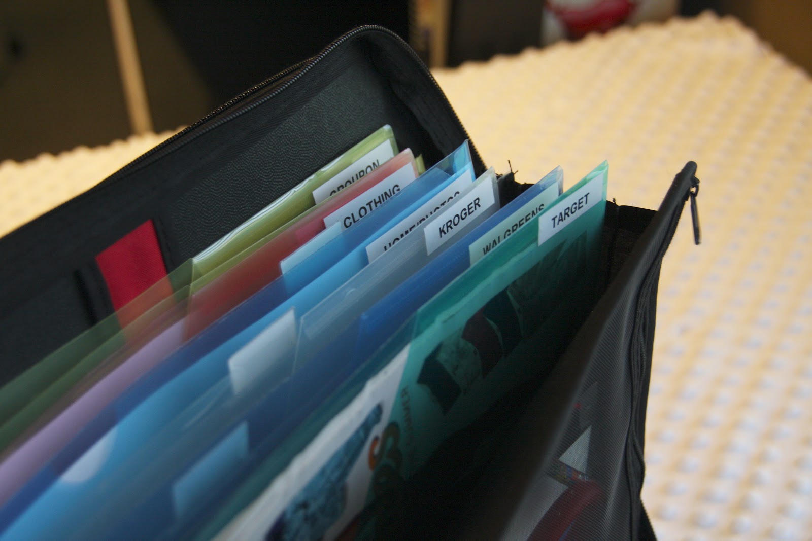 i have an accordion file section in the front of the binder dedicated to stores i frequent and other general store/restaurant/online coupons. inside the individual plastic file pockets, i have store ads and coupons for the stores i shop at most often…