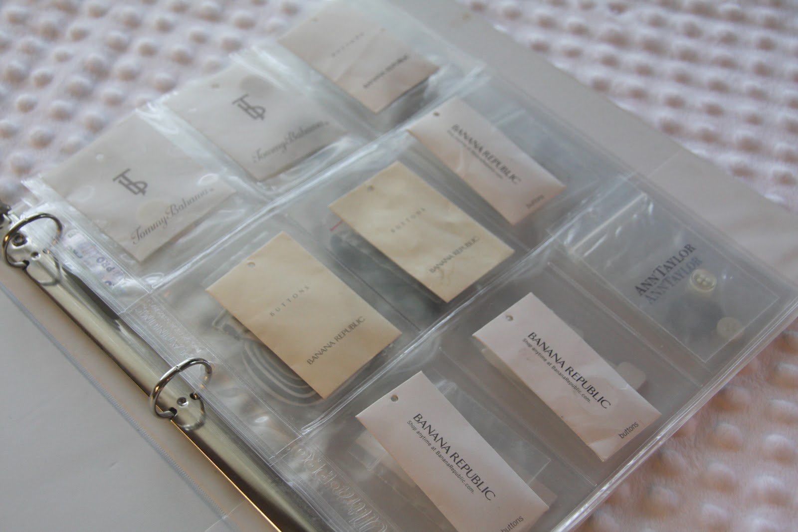 I like the idea of the buttons. I color coordinate mine and put them in a clear sewing box with compartments. That way I can see them all and find them easily.