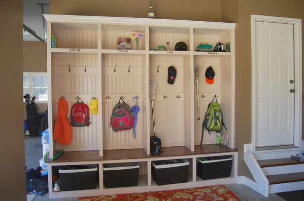 by the way, i have to share a photo of my most favorite, most coveted mudroom/cubby system in the entire world. a friend of mine e-mailed this photo to me and this amazing mudroom lives in her friend’s home. so jealous! i love that this mudroom is *in* the garage…