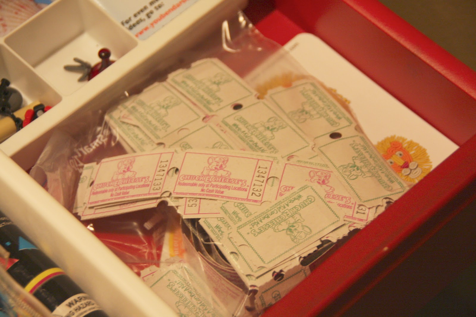 his collection of chuck e cheese tickets and the bendaroo templates…