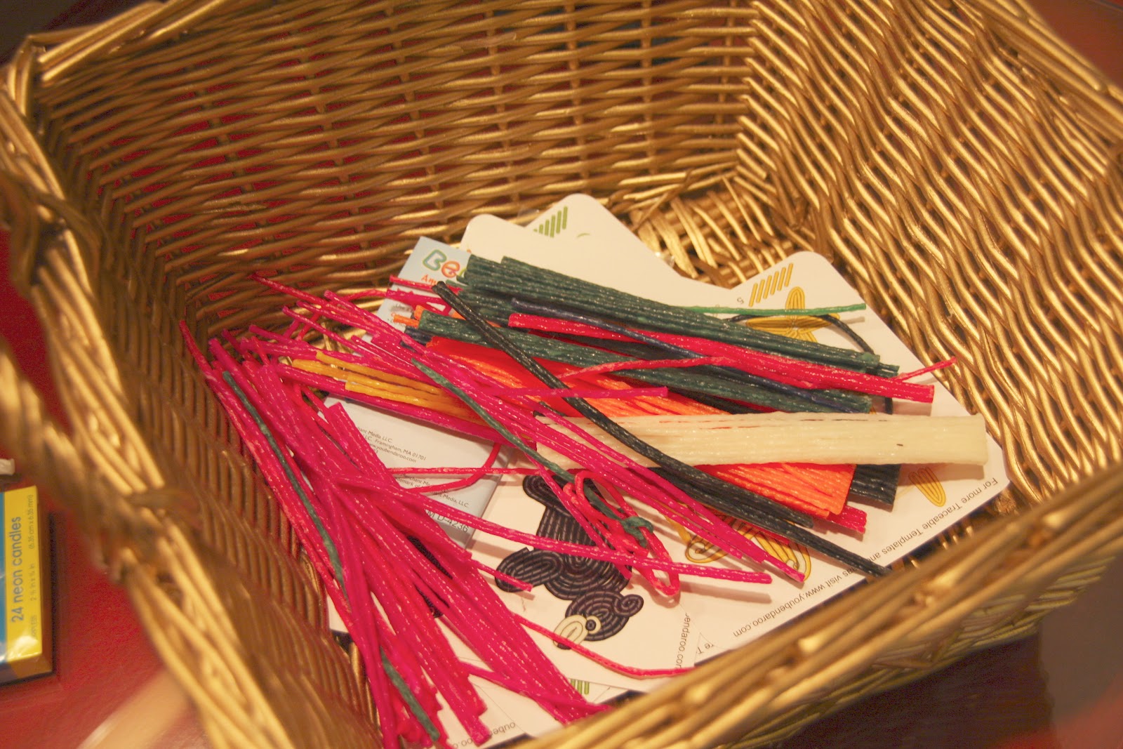 he has a small collection of bendaroo’s that were gathered in a basket…