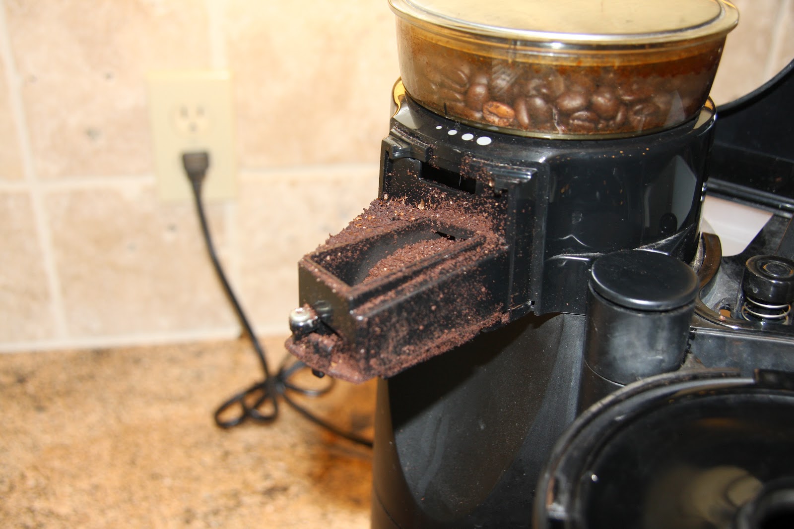 While running the additional water cycles, I use the reserved hot water to clean the inside of the bean compartment. Here is how it looked before…
