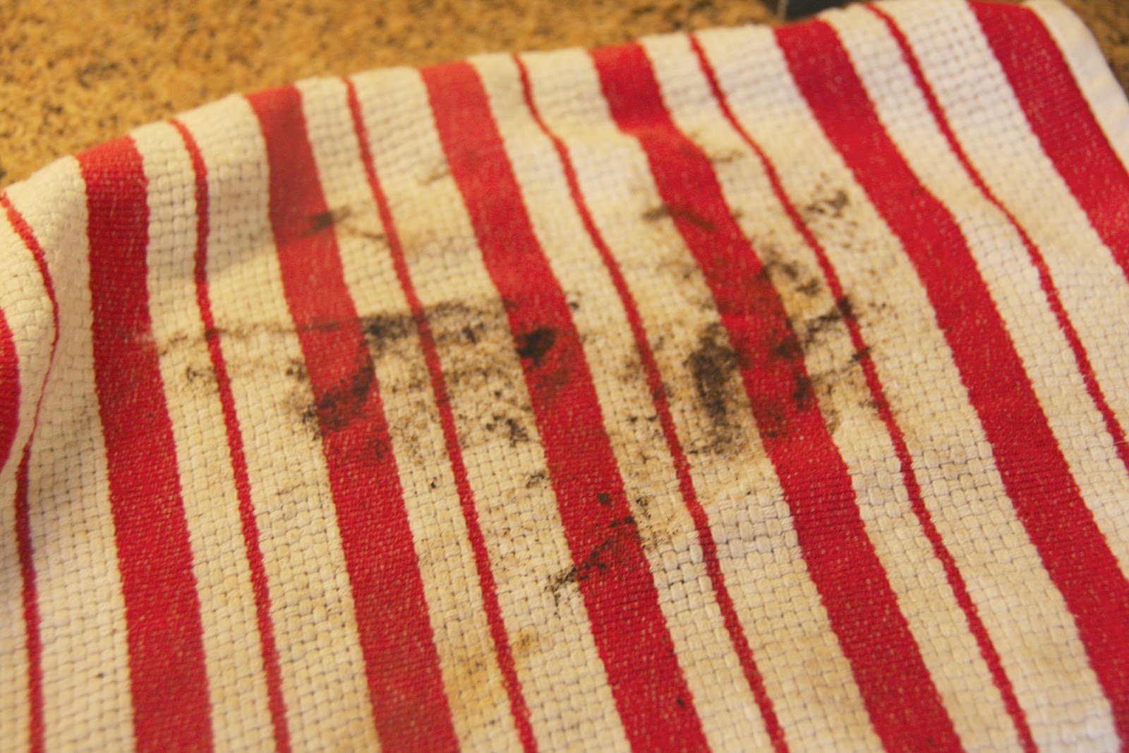 Soak a small corner of a rag with the reserved water and dampen the inside plastic. Doing this helps to loosen some of the caked on coffee bean residue….
