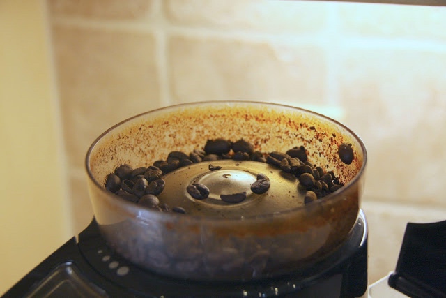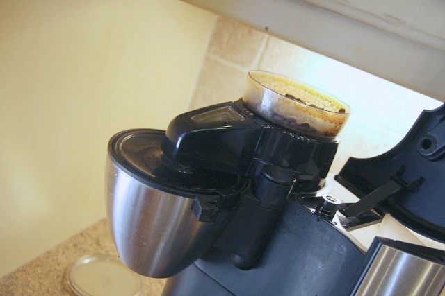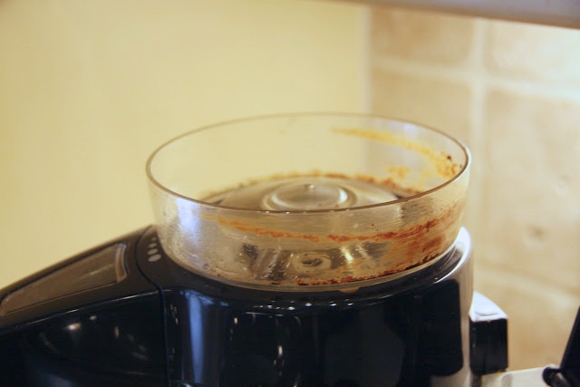 Rotate the filter section that catches the grinds and let the machine grind out any remnant coffee beans until there is nothing left…