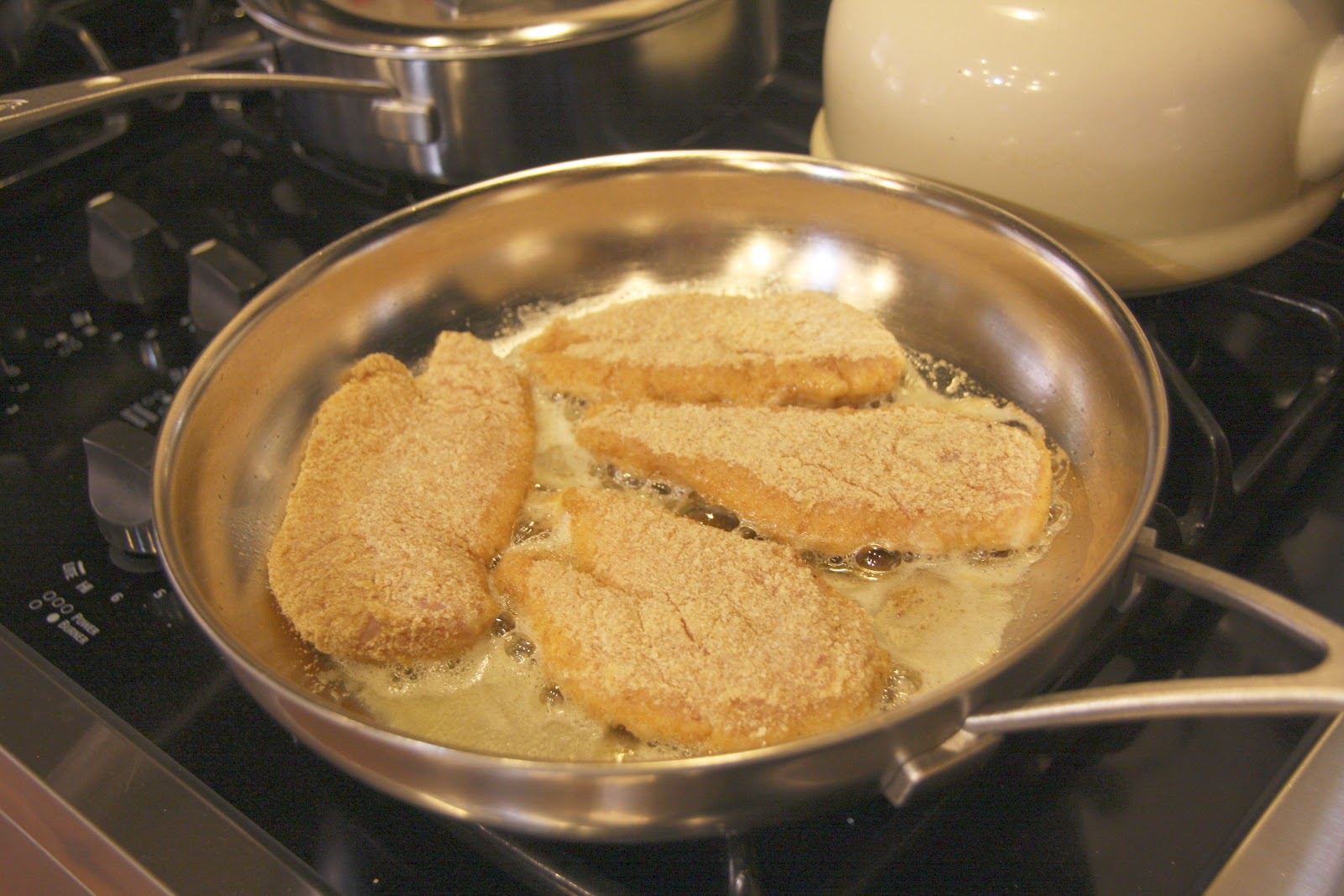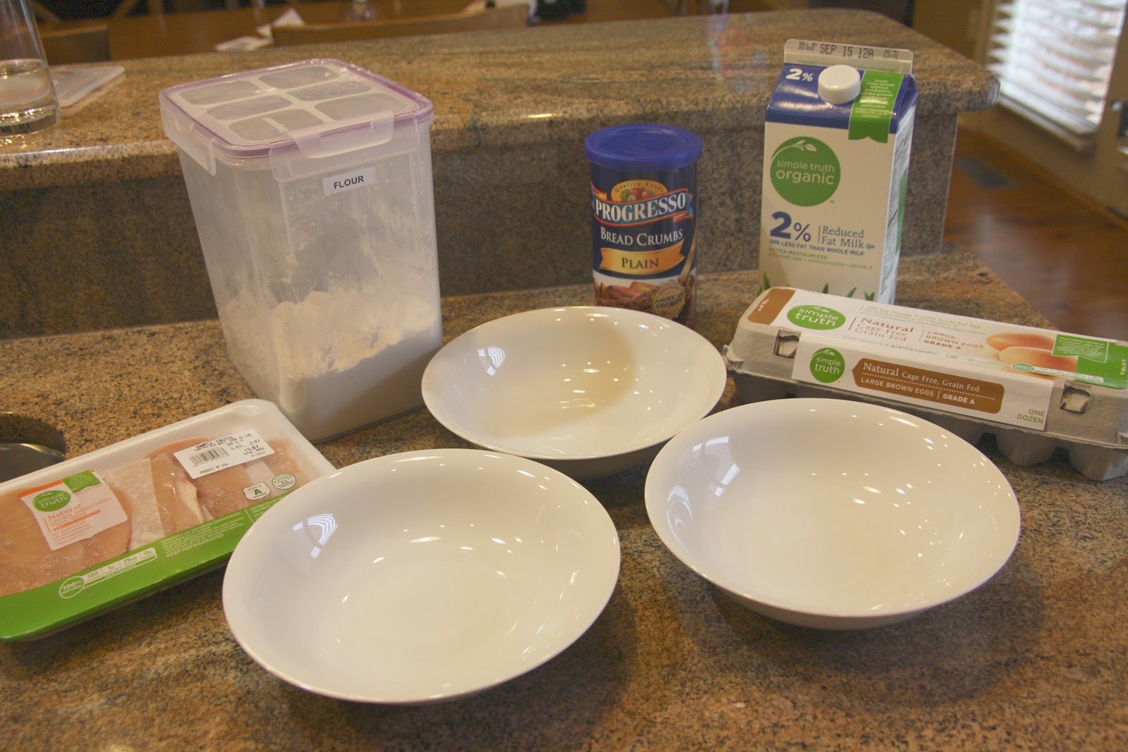 In another bowl add plain bread crumbs. In the final bowl add flour, seasoned with a bit of salt and pepper…