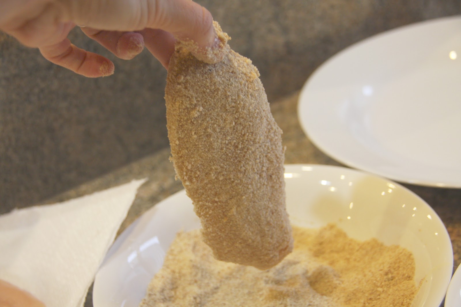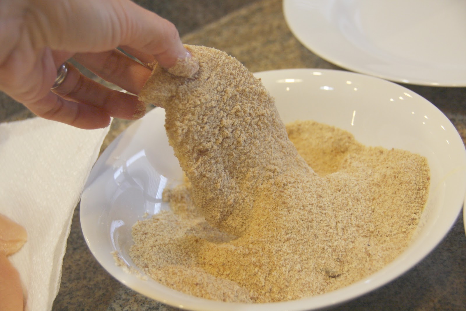 Some have suggested using one hand for the wet ingredient and one hand for the dry. I’ve tried several ways. No matter which way, it seems your fingers are going to get messy. Just make sure you start with clean hands and wash again really well after you’re done breading the chicken…