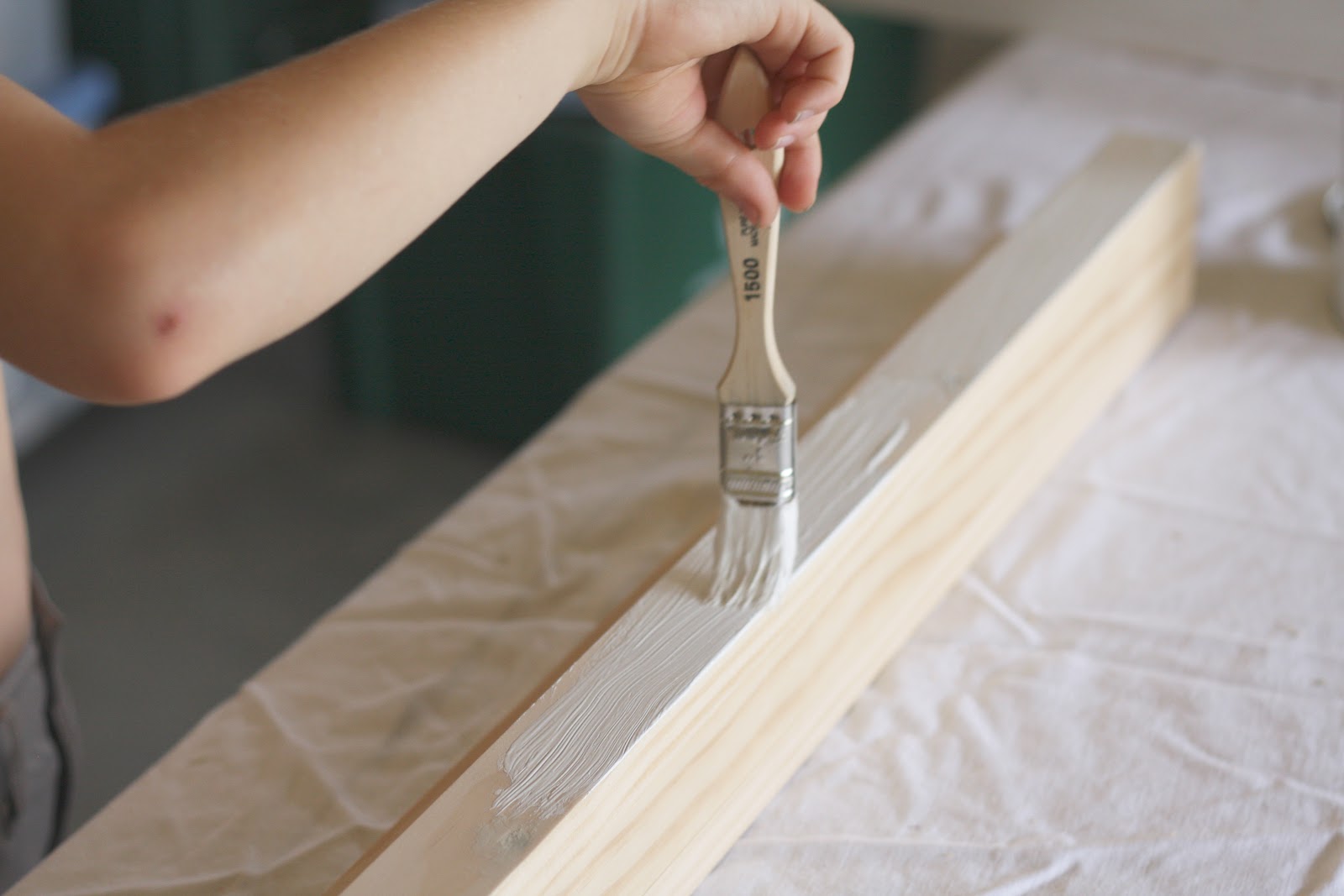 When the filler was dry, I sanded it to a smooth finish and got started on the fun part – priming and painting. I used Zinsser primer because I already had some. My 7 year old had fun helping…
