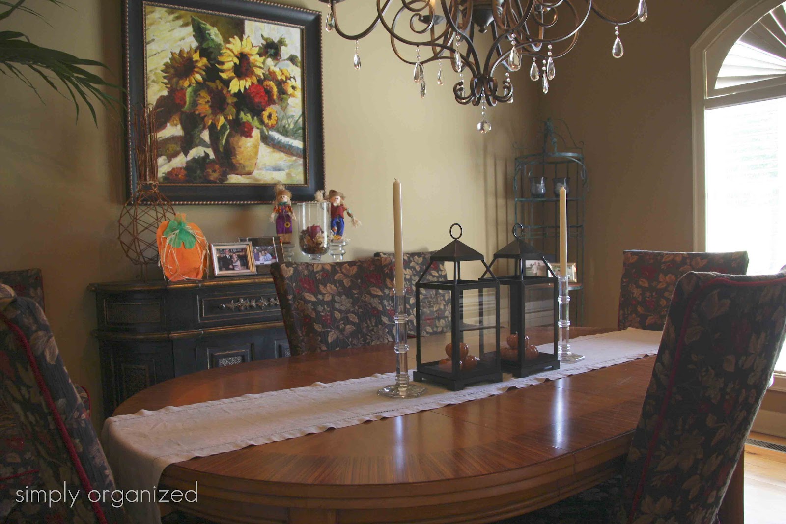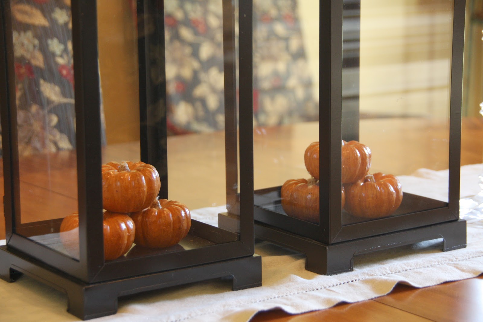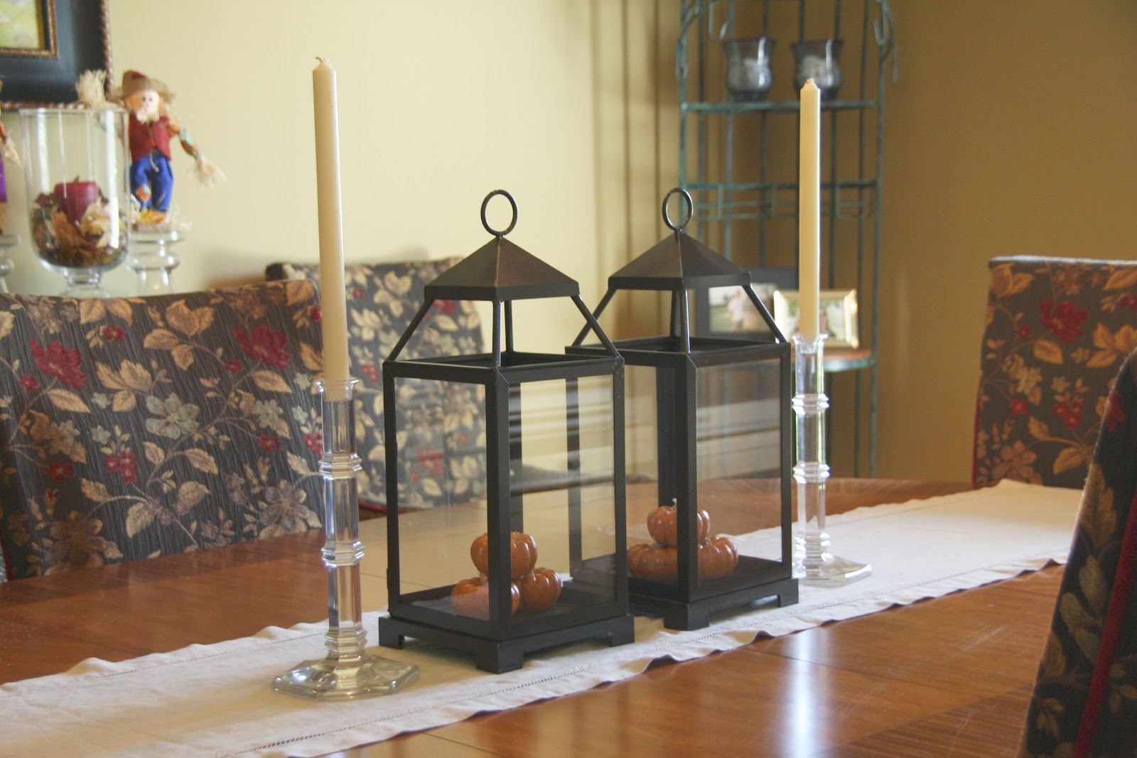 I love all the little details! I think my favorite decoration has to be the lanterns on your table with the pumpkins inside. Very simple and pretty!