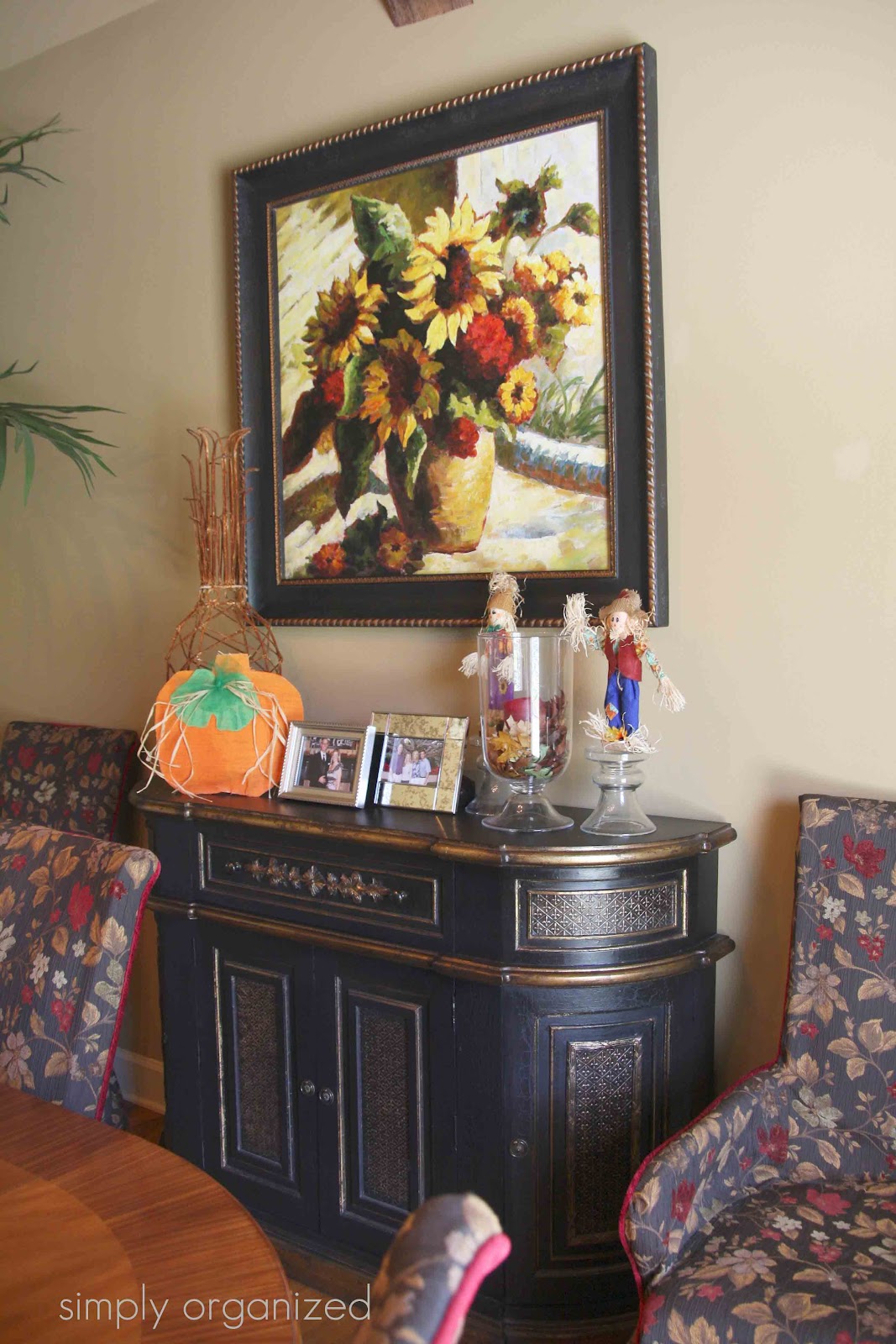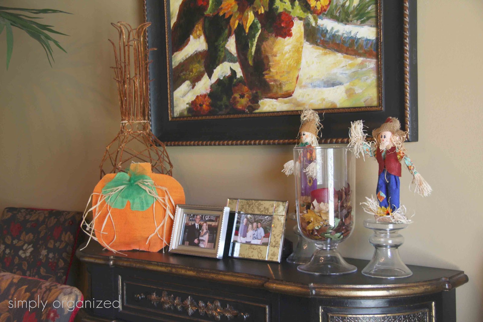 Oh I just love this time of year! Your fall touches look wonderful, and I especially love the pumpkin made by your 6 yr. old. How adorable.