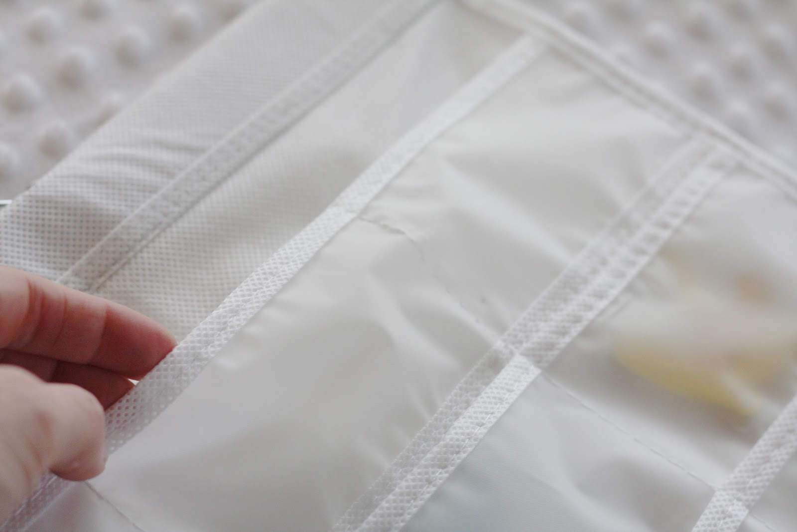 but the pill organizer wasn’t fitting well in the small pockets of this organizer, so i quickly fixed that. how? i snipped the threading out of one side of the top row…