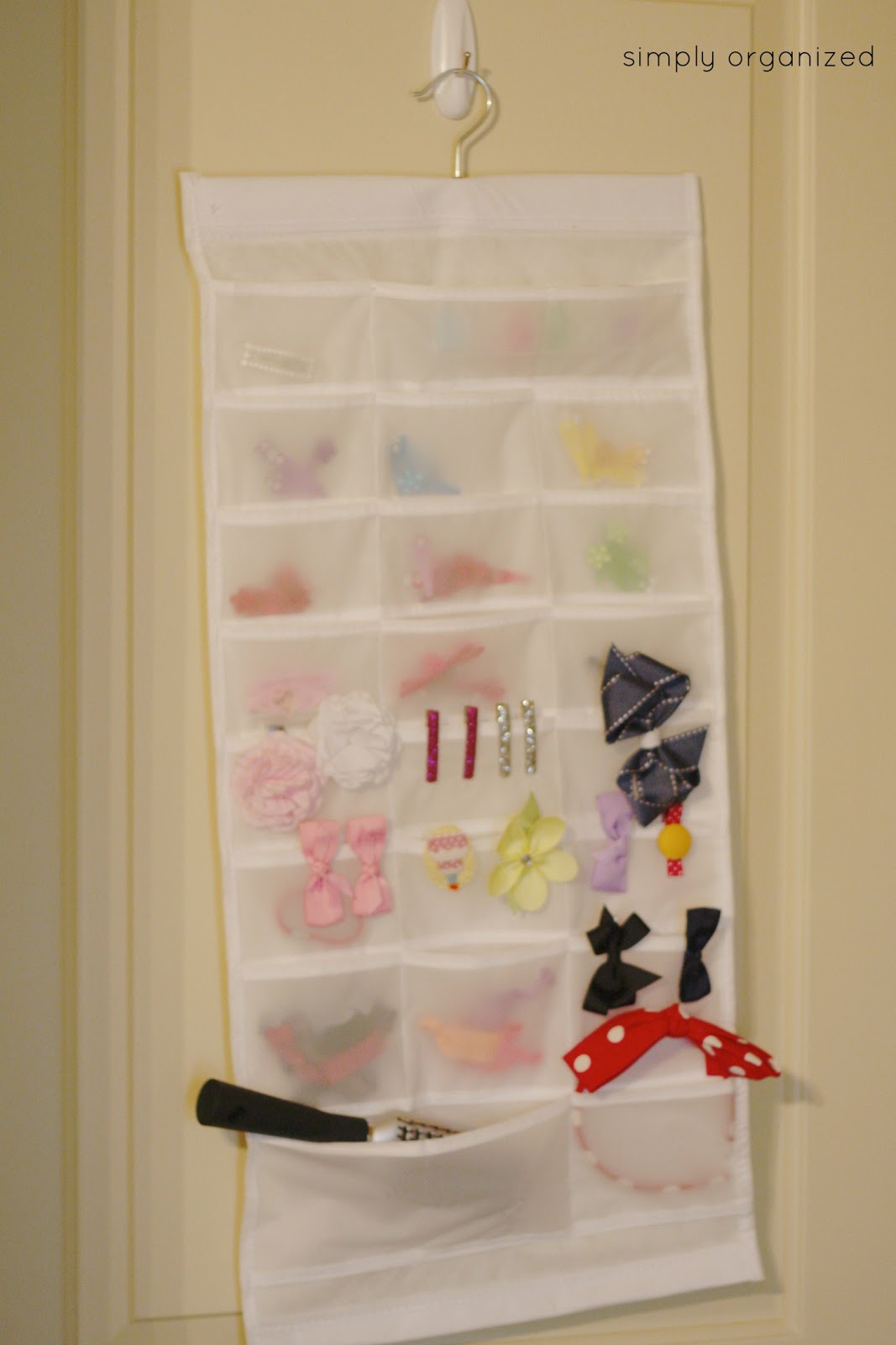 i added all of the bow / alligator clips, large rubber bands and headbands to the bottom portion of the organizer first…