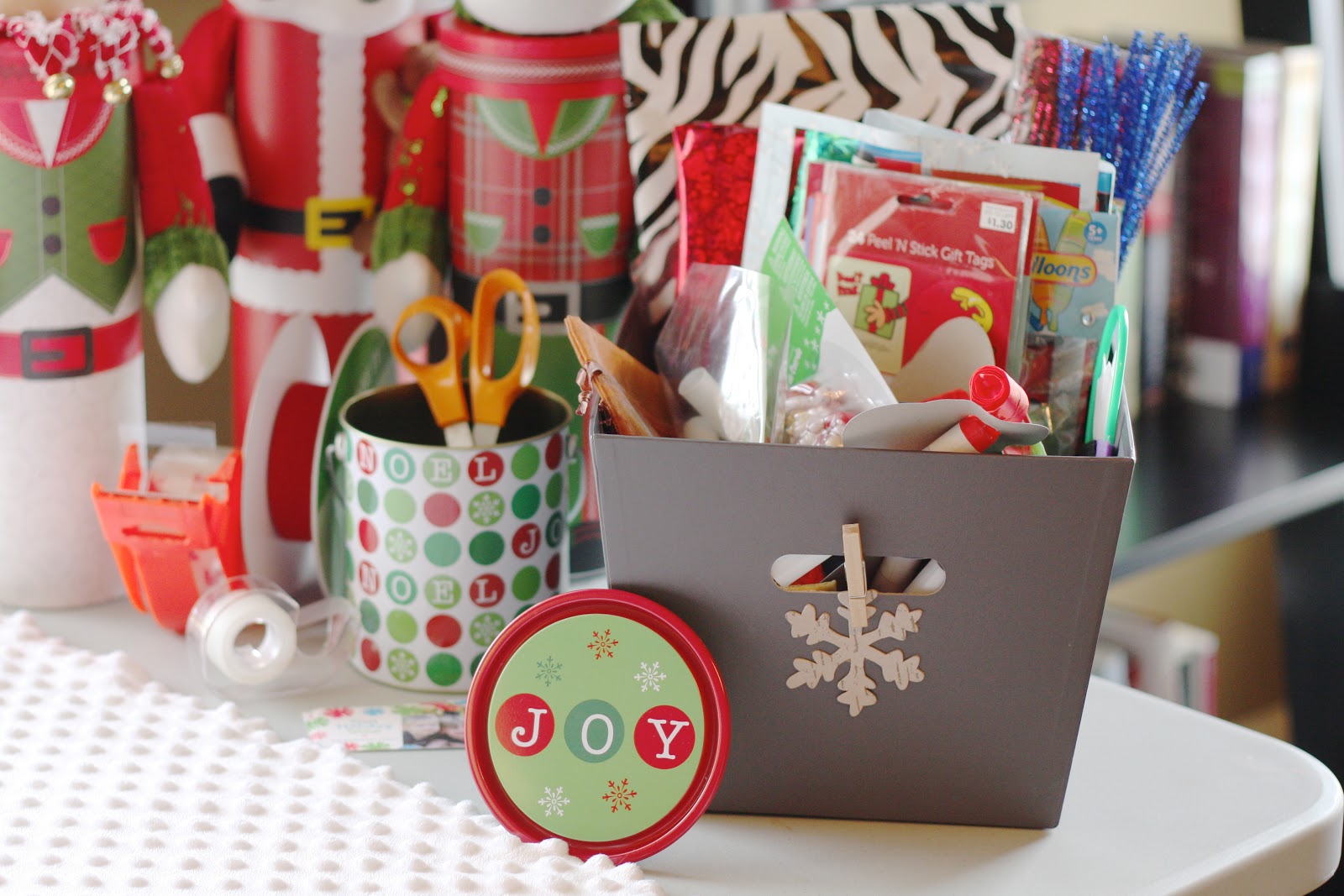 Since our family is out of state, I begin wrapping/shipping early in the month. That way we’re certain gifts have enough time to arrive well before Christmas. Making the wrapping / shipping experience easier is easy when you set up an organized gift wrap station…