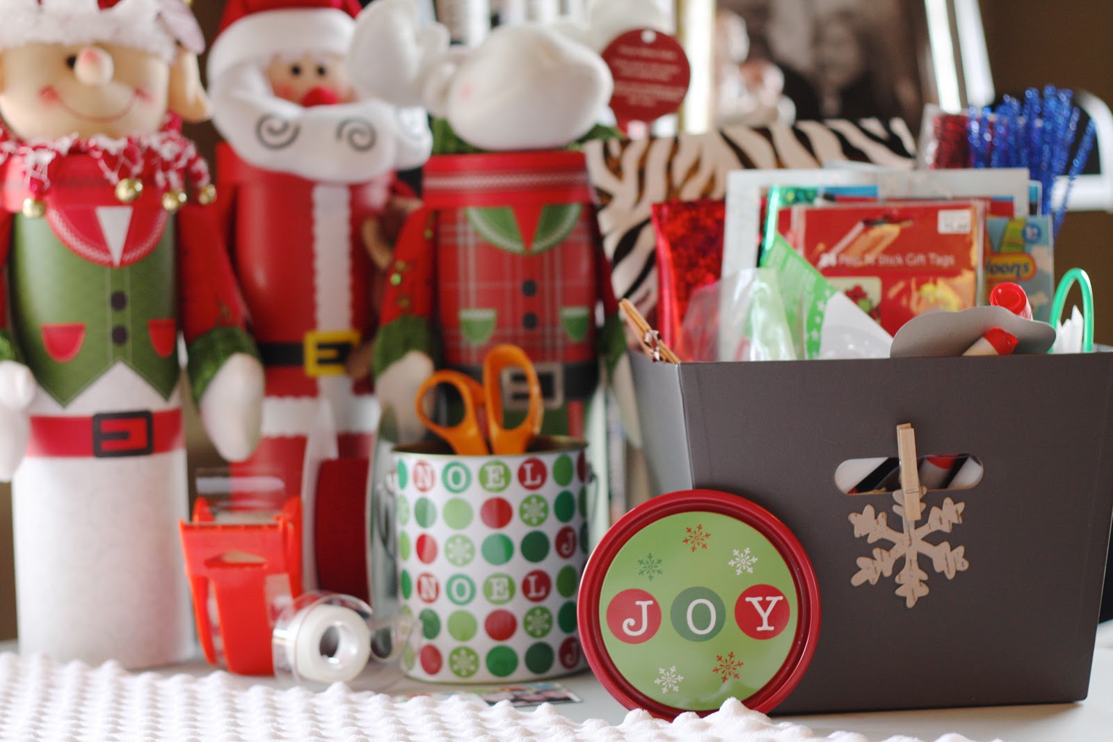 Be sure to make space for packing tape, regular gift-wrapping tape, scissors, ribbon, and boxes for wrapping odd shaped items. I like to recycle boxes from previous Christmas holiday seasons…