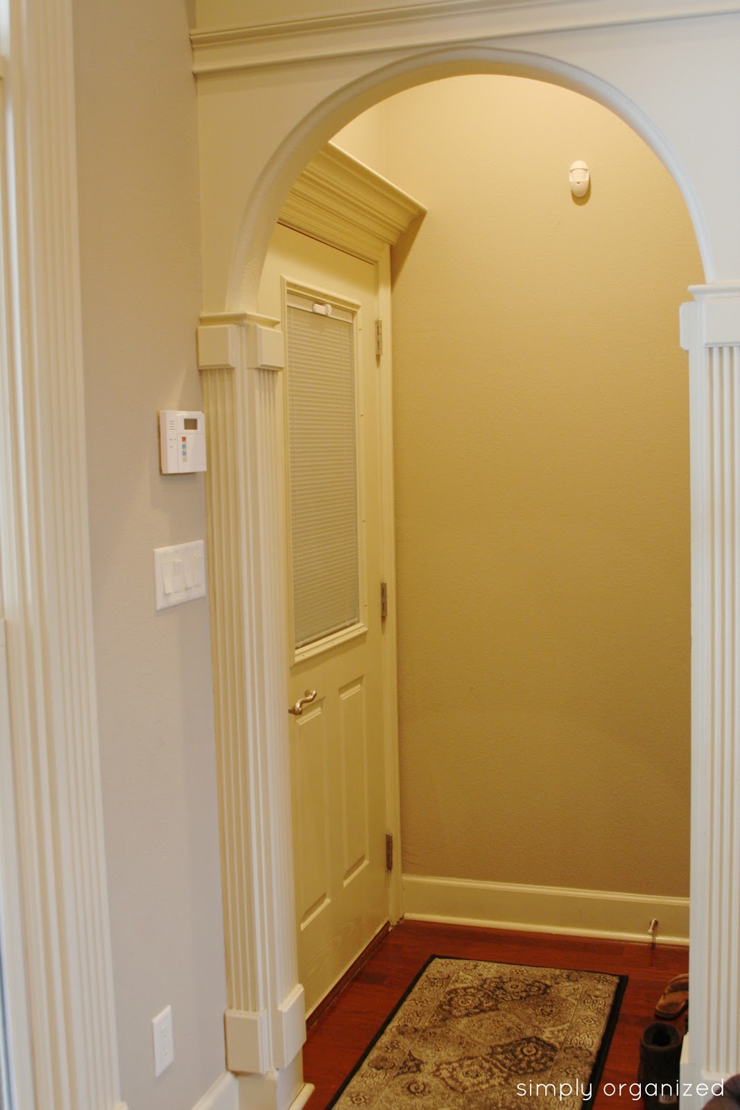 …finding a spot for coats, shoes, backpacks and my purse. The pile you see is how I lived the first few days. When we arrived home, we dumped everything right there in a pile. This wasn’t going to last long for this neat-freak.