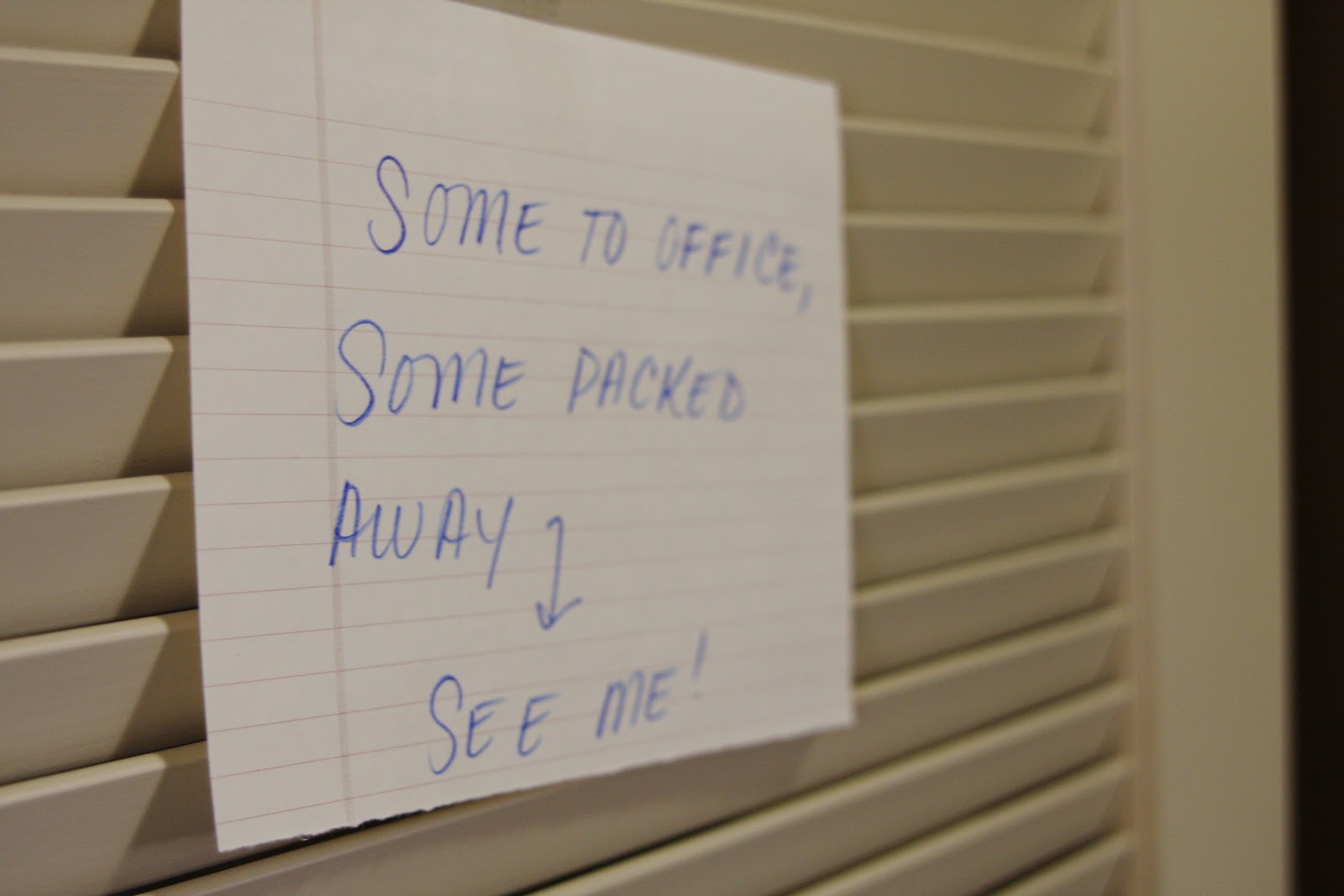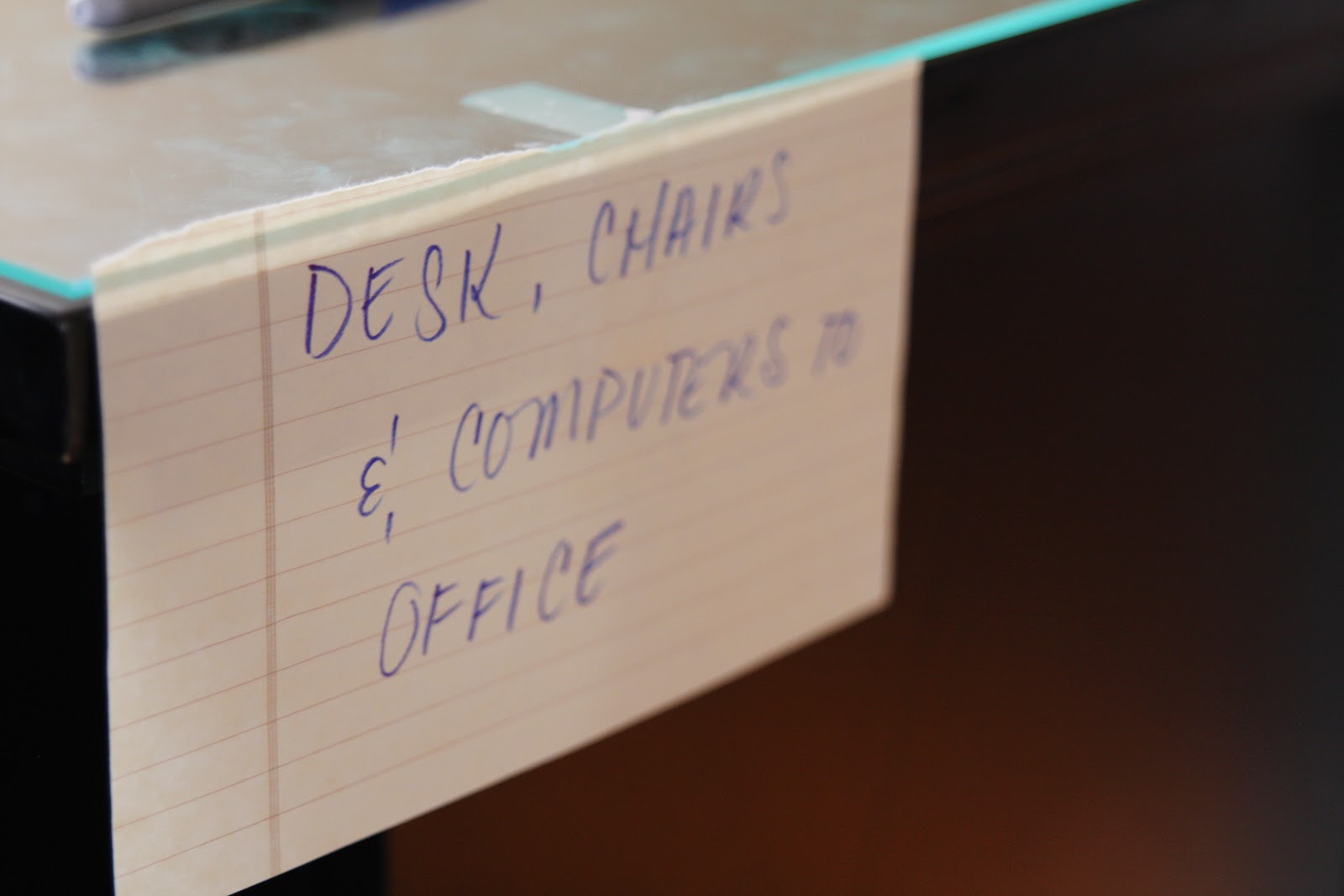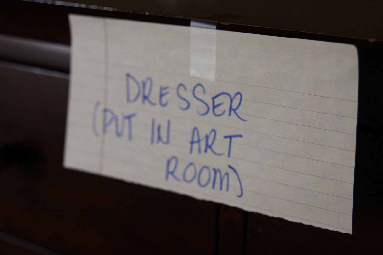 *you’ll notice papers/labels posted on all of the walls (and in some rooms they are on the floor too). just me and my OCD ways. Lord help the people who have to deal with me. here are a few of my lovely labels up close and personal. i’ll explain the method to my madness when i share all of the details about an organized move…