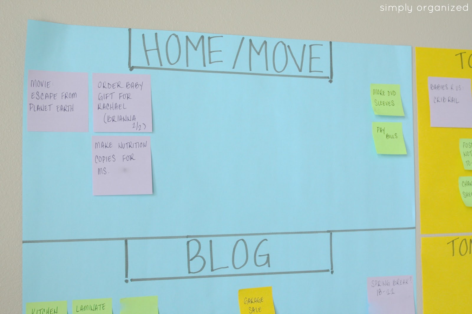 * Anything hanging on the blue post-it are tasks that need to be accomplished within the next 5-7 days. I can add more during the week as they pop into mind, arrive via e-mail, or come home in backpacks.